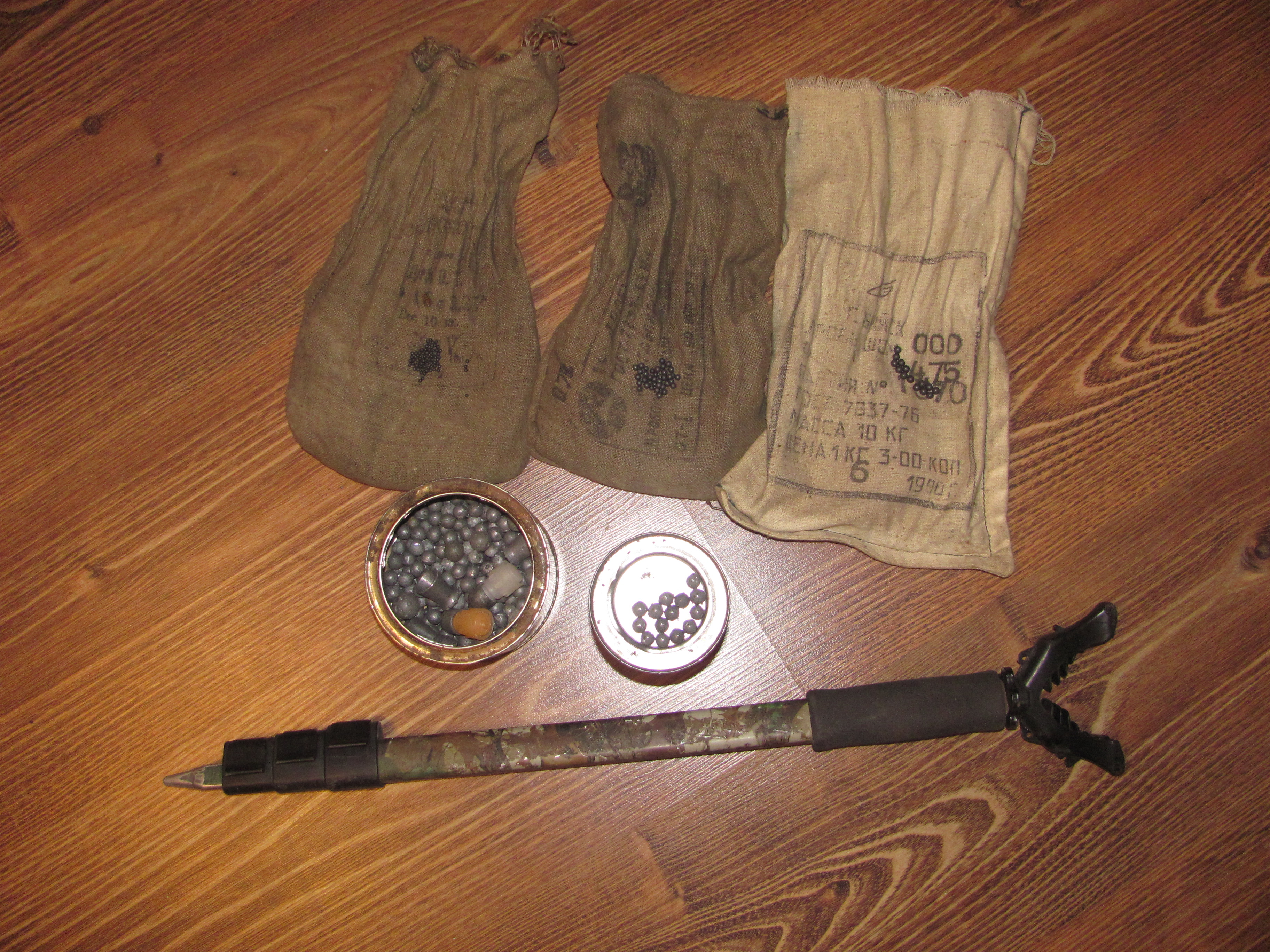 Дроби 5 видов общим весом более 5кг. Монопод складной алюминиевый.