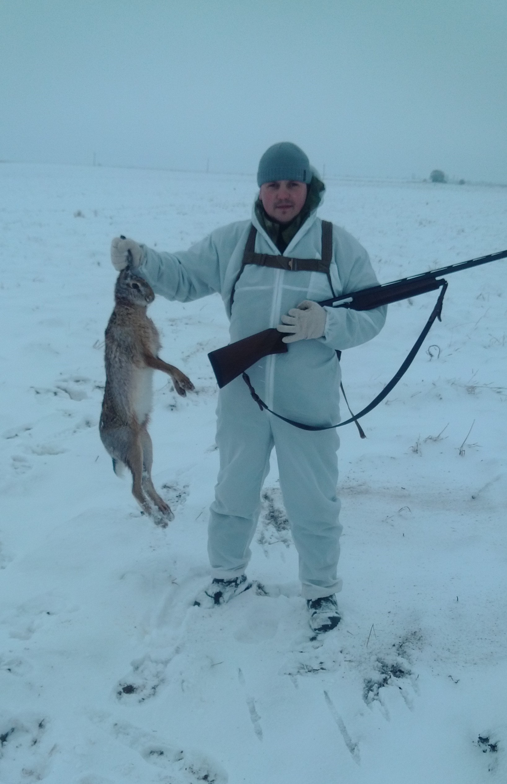 Было подобное, прошлой осенью. Тесть зайца поднял, после выстрела единицей заяц с перебитой ногой продолжал бежать, хоть и чуть медленнее. Я же в тот момент только отошел от речки, в стволах была пятерка, пока тесть перезаряжался - я рванул за косым. Пока бегу, понимаю, что если остановлюсь для выстрела, то заяц, пока целюсь, успеет отбежать на расстояние, недоступное для пятерки, а перезарядиться на такой скорости бега нереально. Но косой вдруг решил буквально на секунду остановиться, чтобы осмотреться, куда драпать дальше. Шанс я не упустил, один выстрел - готов на месте.