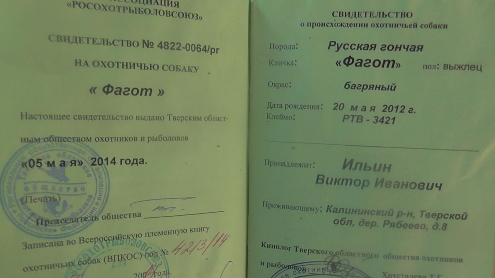Отец Фагот вл.Ильин В.И. г.Тверь дипл.2зб,3зб,3л. отлично