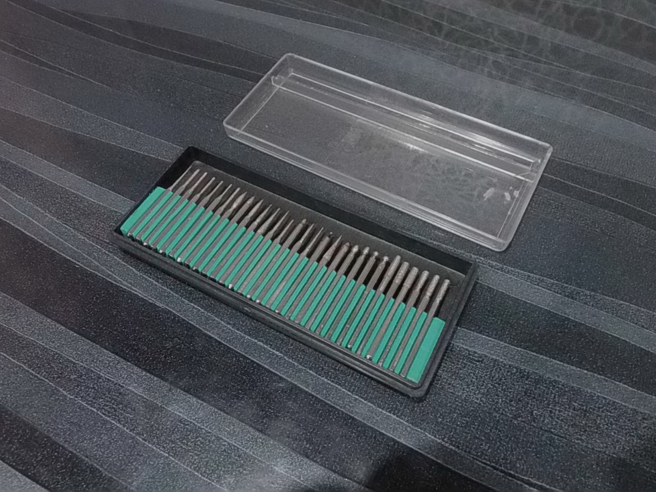 Я использовал машинку в основном для мелкой гравировки с помощью вот такого купленного отдельно набора боров по металлу: