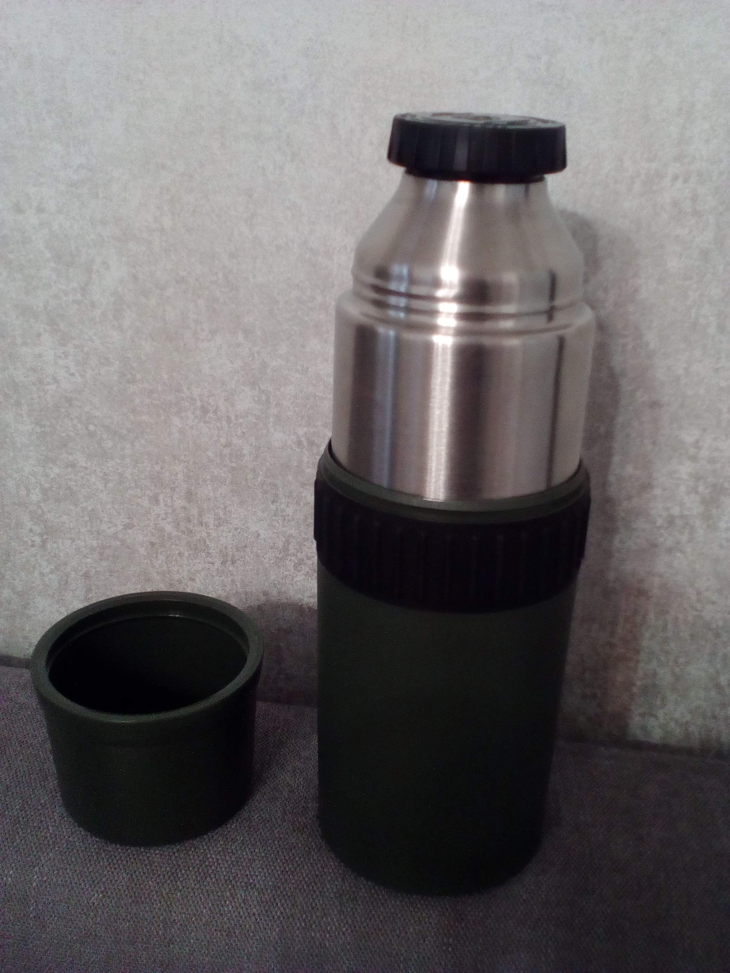 термос армии Нидерландов (Голландии) новый объемом 1 литр. Колба из нержавеющей стали, корпус из пластика с резиновым кольцом. Размеры 30х10 см. 70р.