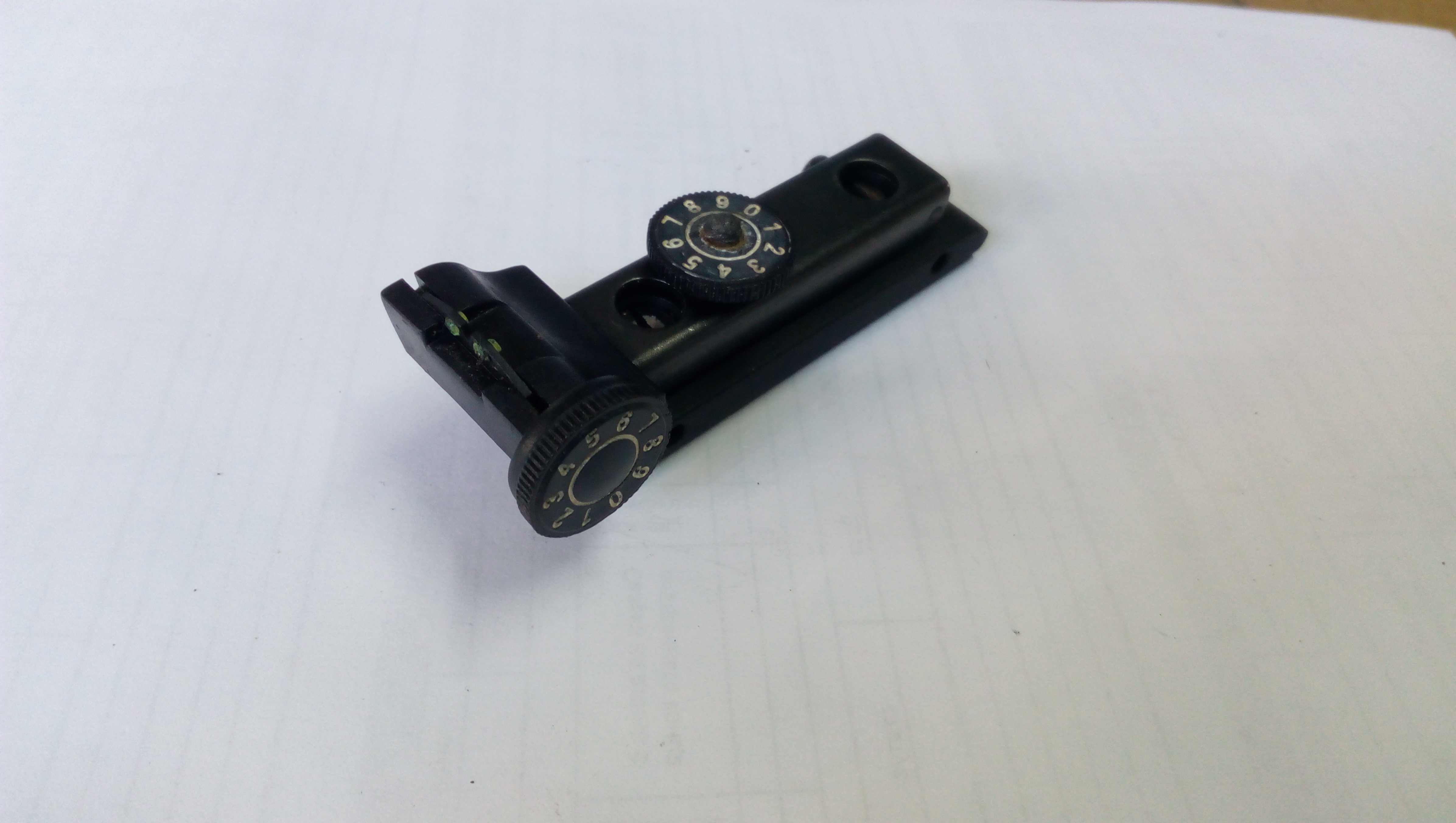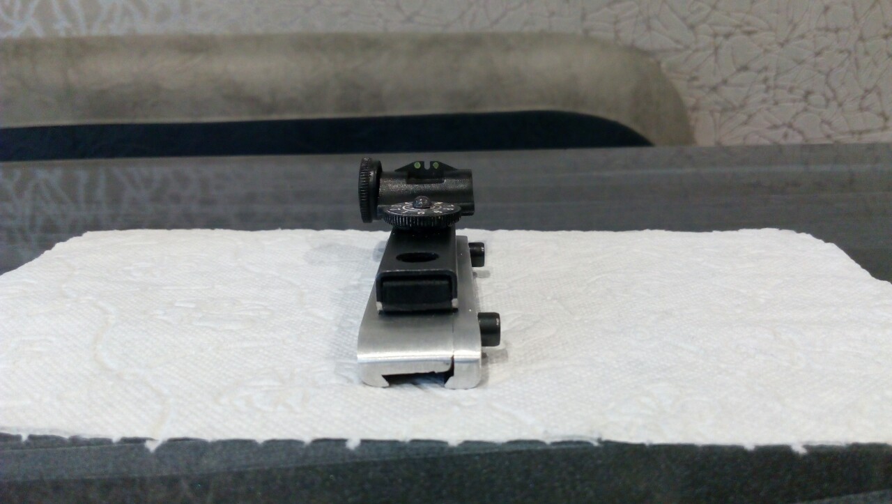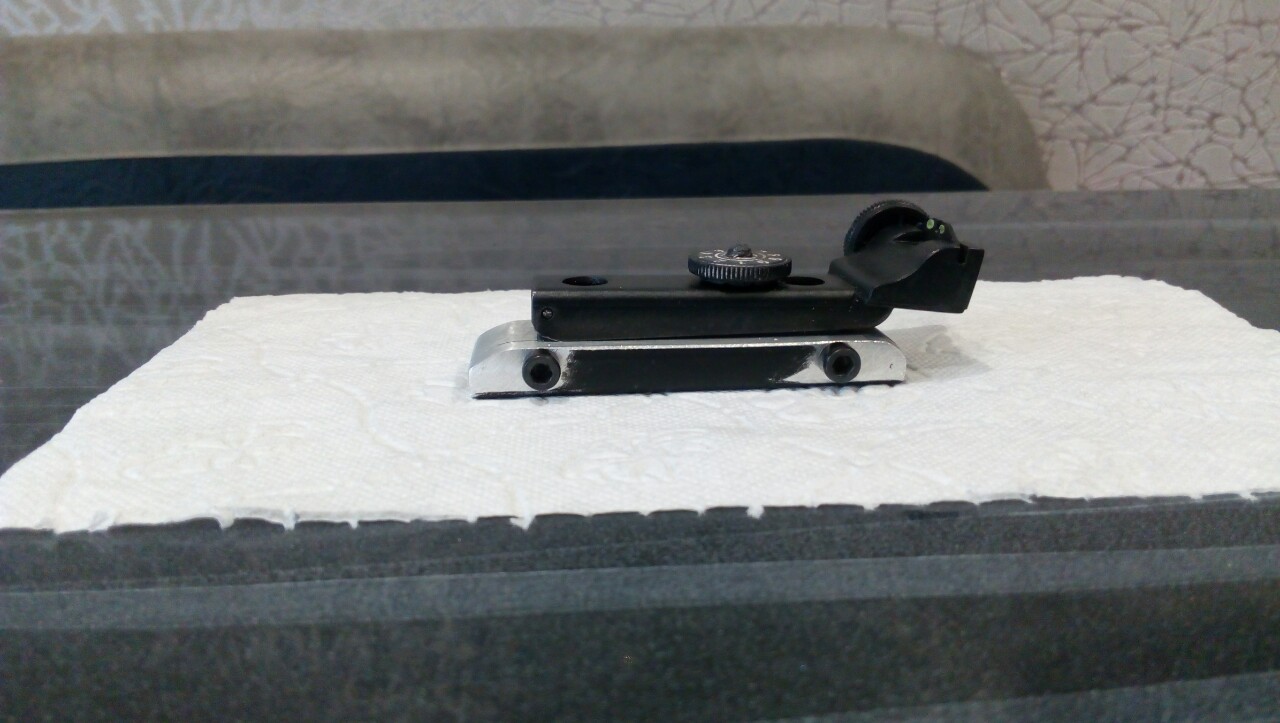 Андрей - согласен :-): Но при такой установке(близко к глазу) по бокам мушки будет большой просвет. Хотя тоже решаемо: запилить новую планочку с узкой прорезью(работы на полчаса максимум)