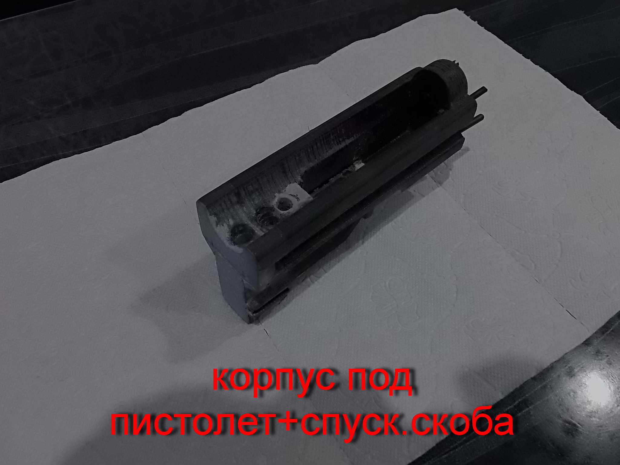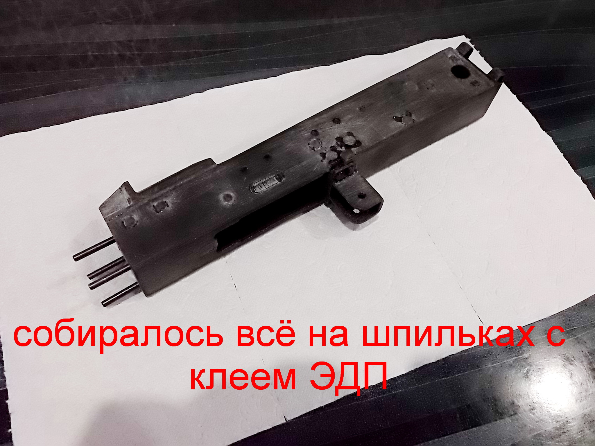Первым делом напечатал коробку АК,модуль с колодкой под целик и разумеется сам корпус (ложу) для пистолета. Выполнено всё было отменно! Мне оставалось хорошенько зачистить напечатанные детали,зашпаклевать нужное,снова зачистить под покраску. Чтобы собрать воедино эти три модуля,применил я стальные шпильки. В каждом модуле были изначально предусмотрены отверстия под них. И после обезжиривания шпильки эти были вклеены в отверстия,а затем на тот же ЭДП всё было собрано в одну конструкцию.Вот снимки модулей: