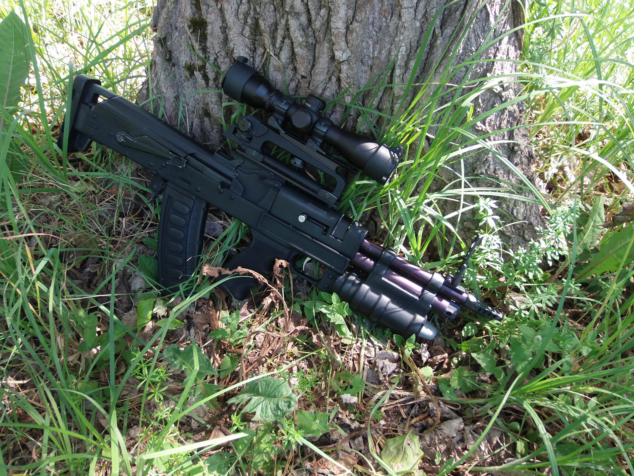Магазин фиксируется отлично-с замком долго возился,но сделал чтобы всё было чин чинарём! Ну и вот! И этот модуль несёт какую-то функциональность! Наличие запасного барабанчика снаряжённого,позволит съэкономить время на перезарядке. А наличие запасного баллончика с кислотой в подствольнике даст возможность ещё больше пострелять!К слову с одного баллончика пулей кал.5,5мм и весом 0,87г мне удавалось сделать более 40 выстрелов.