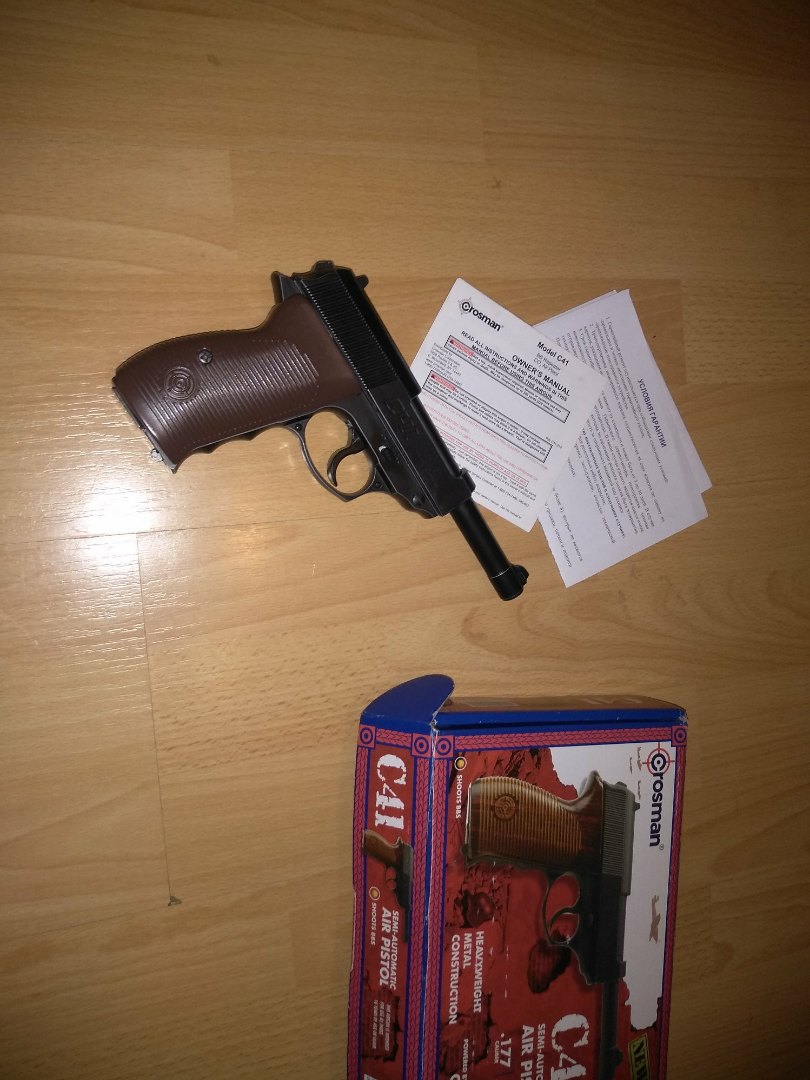 Продам газобаллонный пистолет crosman c41 комплектация балоны, шары, коробка, документы сам пистолет. Сделан внешний ап.