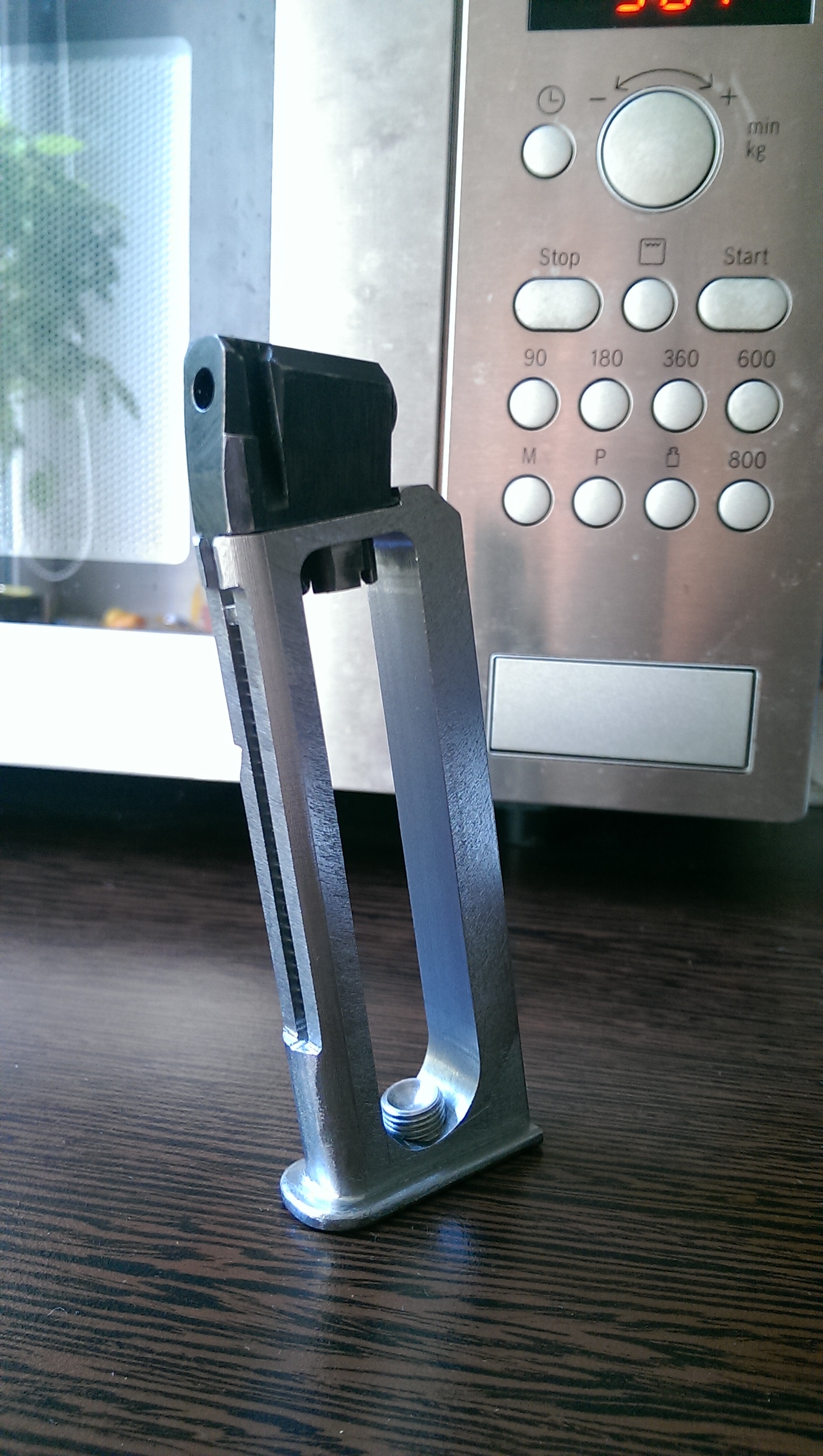3. изготовил новый магазин из цельного куска металла методом фрезеровки. несъемная пятка, скрытый поджимной винт. + воронение в селитре.