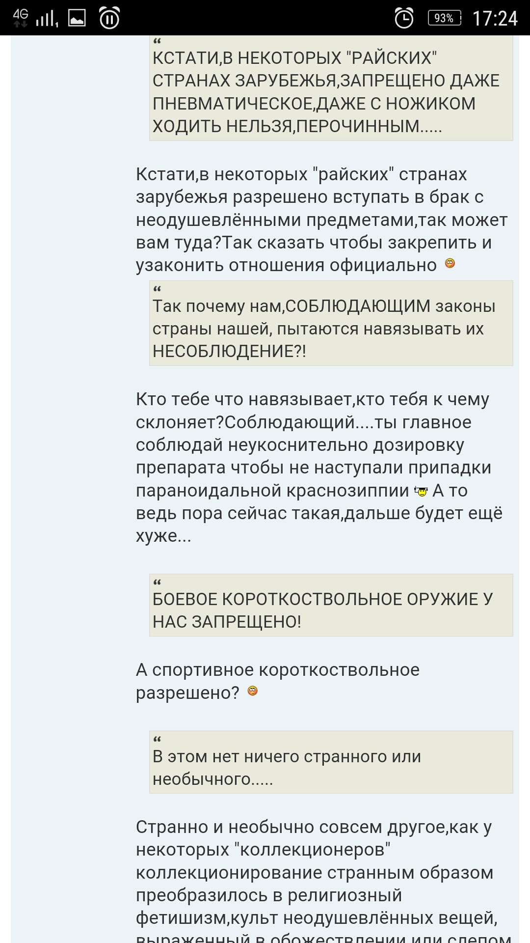 Felix писал(а):Мне тяжело освоить весь текст сообщений за последний период, жаль, что ветка начинает загибаться. Сам любитель ПМ. Но если я правильно понял, суть претензий в том, что что-то наносят на антиблик. Считаю, что наносить можно только на сигнальные версии, потому что при таких мелких прицельных приспособлениях еще и что-то наносить на пневматические версии не стоит, это затруднит эксплуатацию. :uch_tiv: