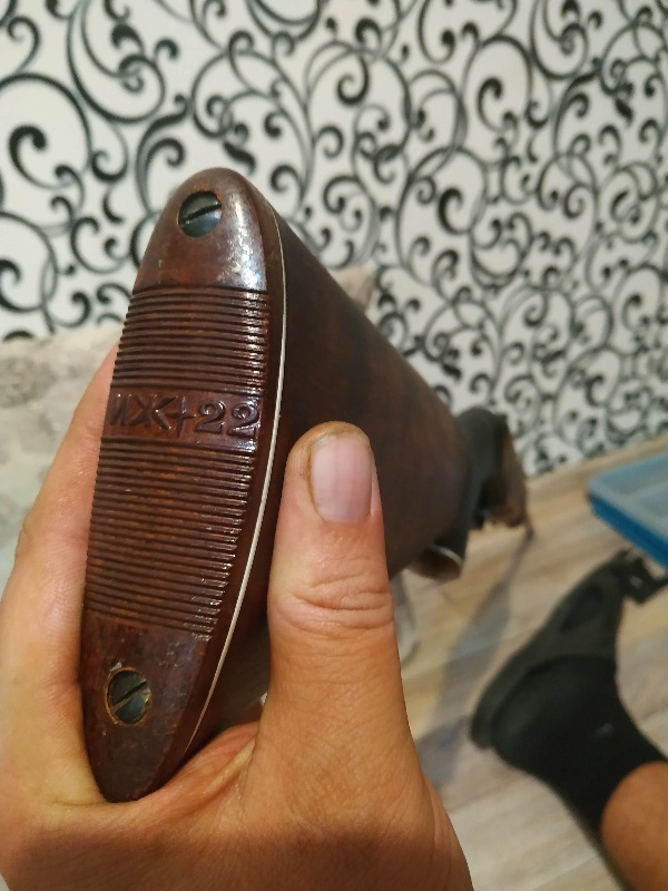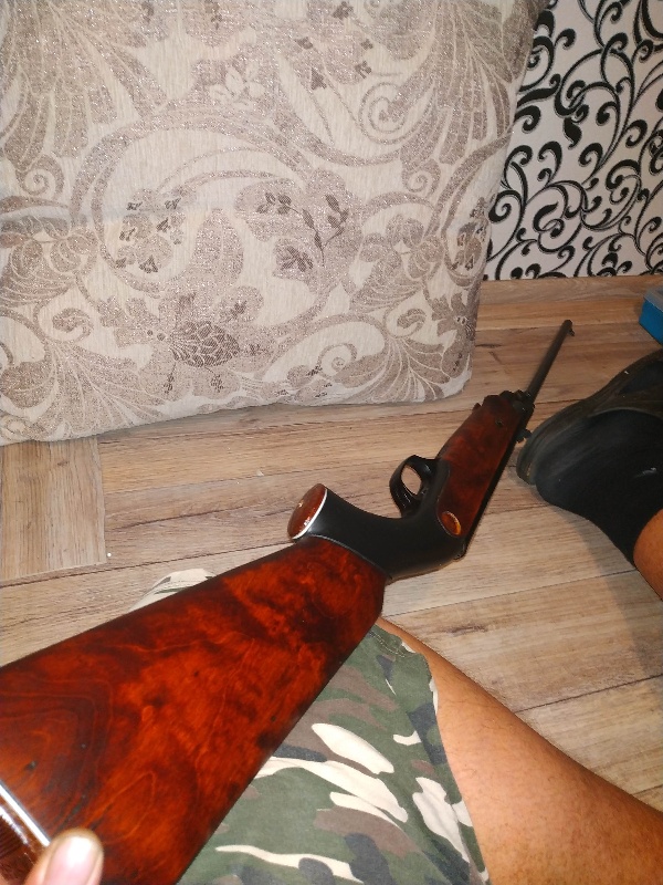 Волеем случая появился в меня очень редкий экземпляр винтовки, выпускающийся в советское время на экспорт. А именно IJ-22. Отличало от распространенных аналогов - наличие деревянного ложа с иными отверстиями крепления, задником с отсутствующим отверстием под винт крепления, монетками с надписями на иностранном языке. Экземпляр по железу был практически в идеале, ни намека на коррозию. А с деревом были траблы - трещины на рукоятке.