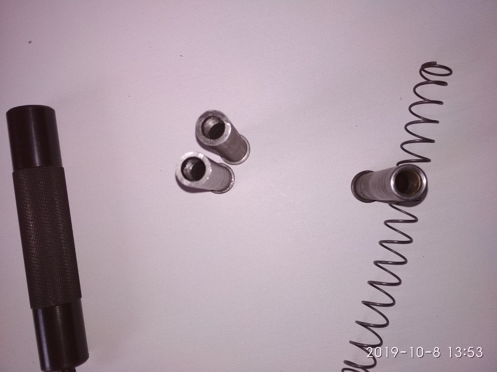 4.Такой же имитатор, только обработан срез + отверстие под фиксацию гужоном на болванке + мягкая пружина от газового ежа - 15р.