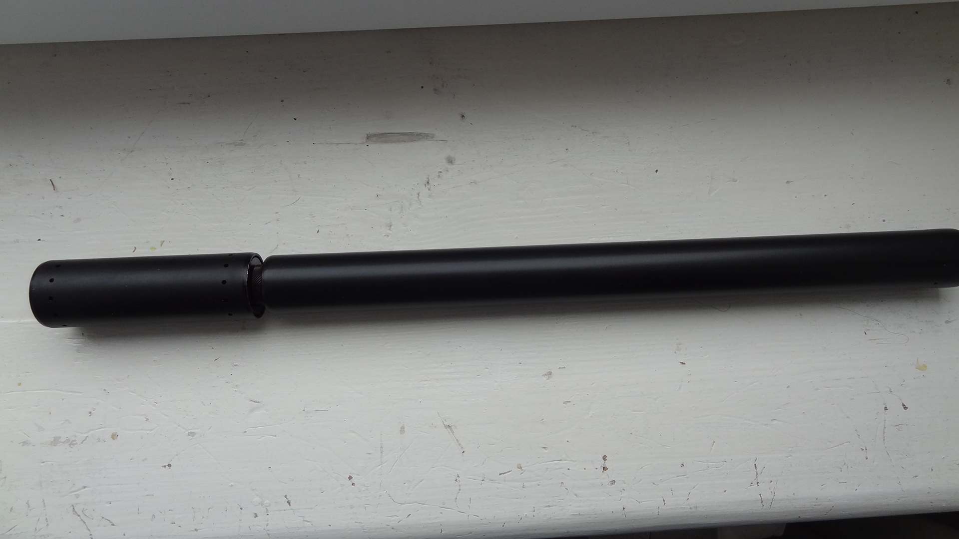Продам саундмодератор от Егерь кал. 6.35 диаметр 28 мм длина 325 мм сажался на ствол диаметром 16.3 мм проточка длина 18 мм диаметр 14.4 мм накручивается на резьбу с мелким шагом, удлиняет ствол на 130 мм. Неразборный. Цена 40 руб. Доп. саундмодератор вкручивается в основной. Длина 98мм диаметр 32 мм. Цена 40 руб. Вопросы в личку или 8025 610 77 97