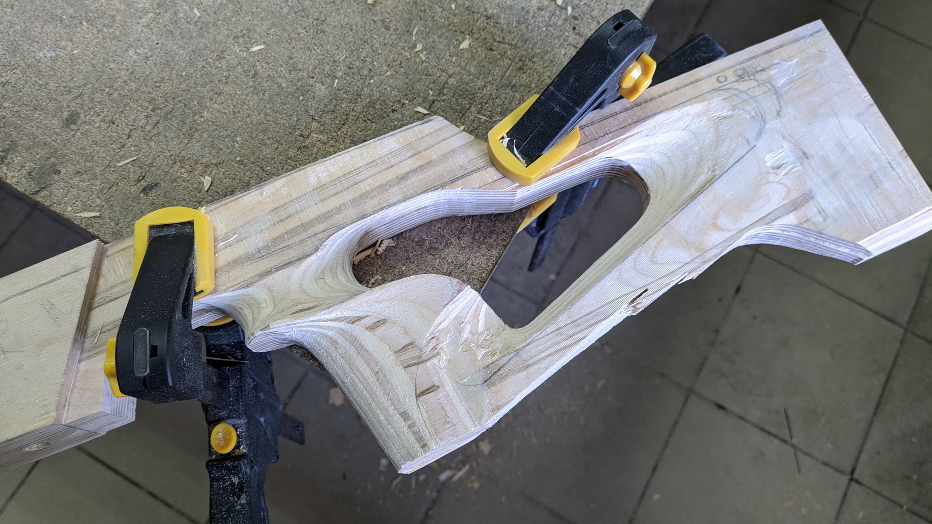 Вырезаны три заготовки, склеен пакет и началось...
