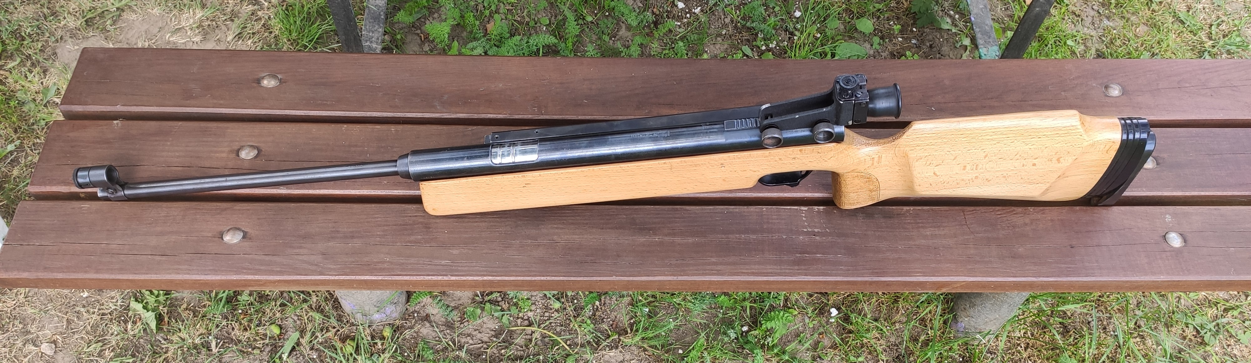 предыдущим владельцем снят родной лак, покрыт свежим лаком (на четыре). так же прошлый владелец ремонтировал рычаг взвода, видно на фото.