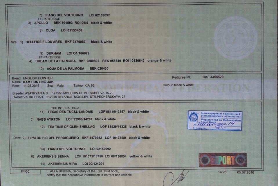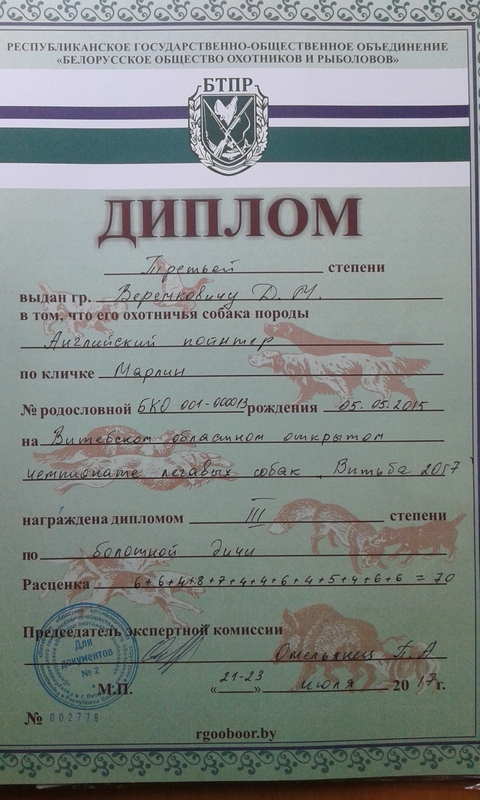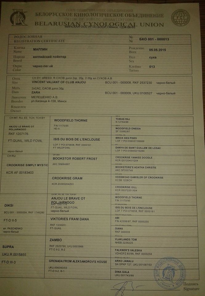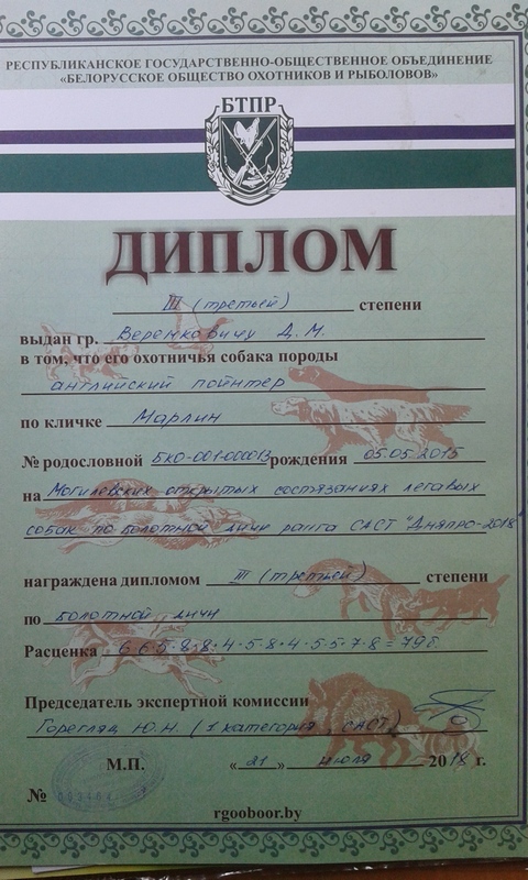1. Порода :Английский пойнтер
