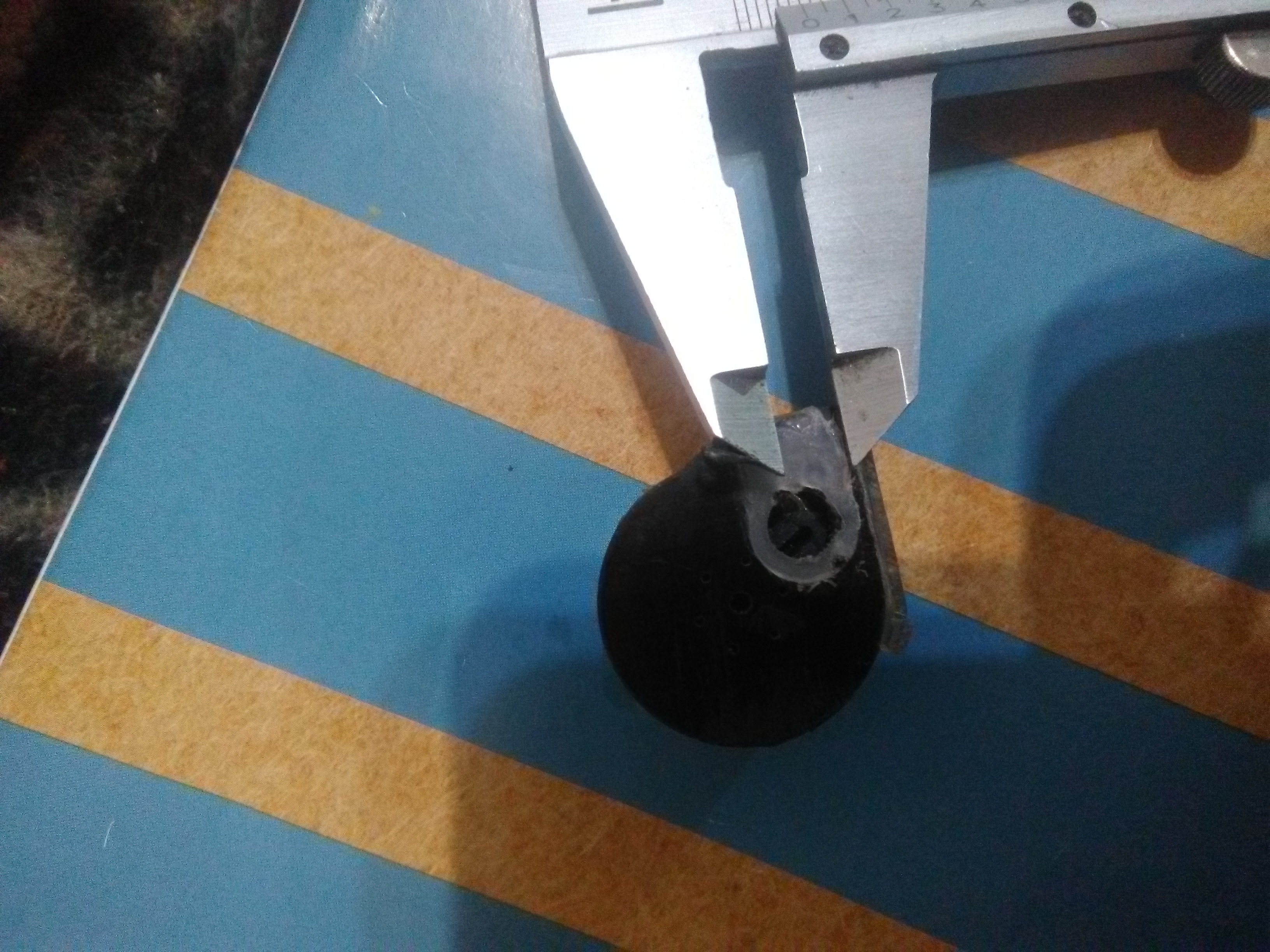 6. Приклеил, супер клеем, "подошву" к корпусу, вклелил магнитик. Соблюдал расстояние от центра отверстия до выступа, на родном барабанчике ~10мм, сделал ~9мм. Не забываем марадера будет вставляется справа, зеркально родному.