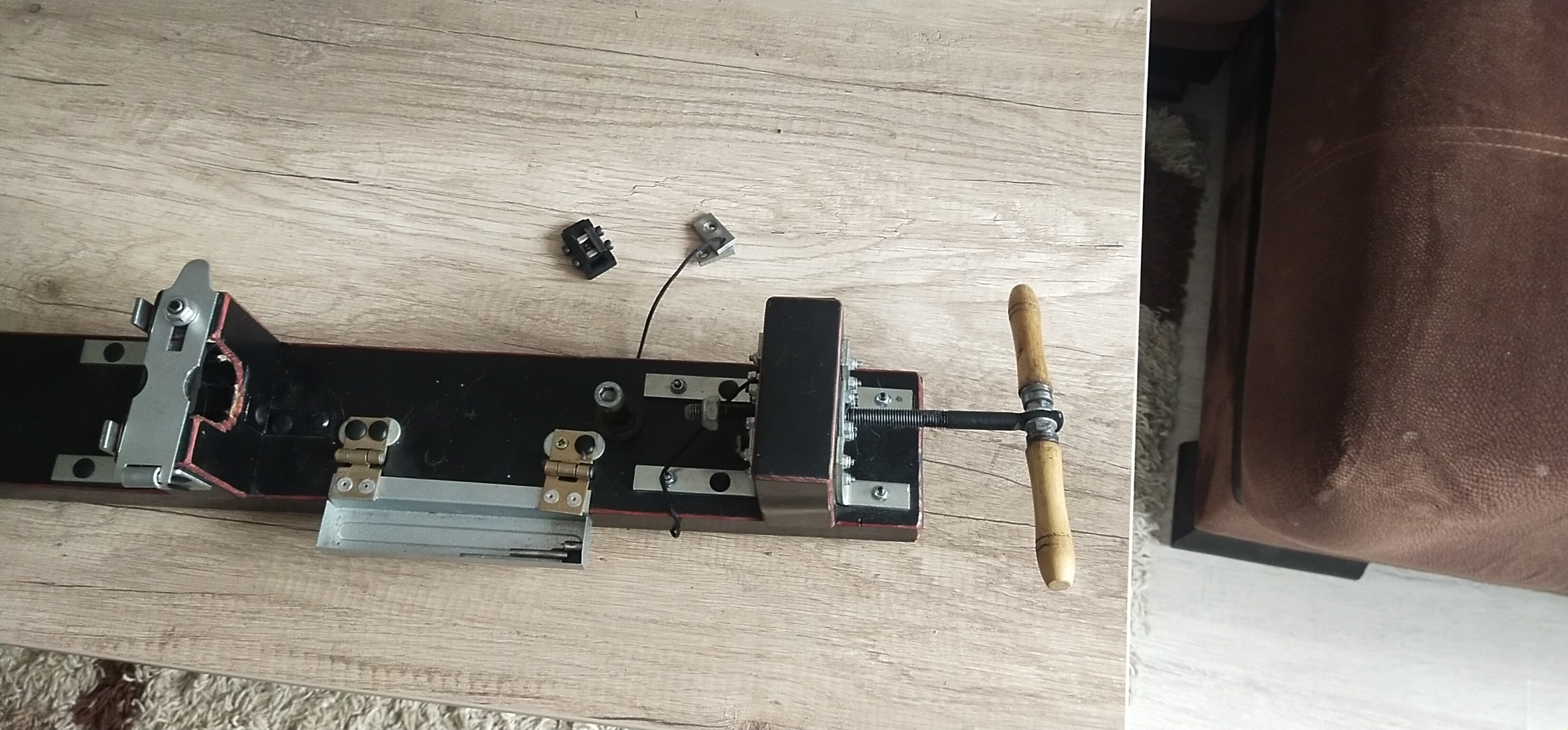 Продам станок для снятия и установки ГП деревянный. Длина 730мм, ширина 95, высота 135, расстояние от стойки с винтом до стойки зажима (1) 295 мм, от стойки зажима (1) до стойки зажима (2) 185 мм. Хочу 125 белорусских рублей. Минск. С почтой дружу.