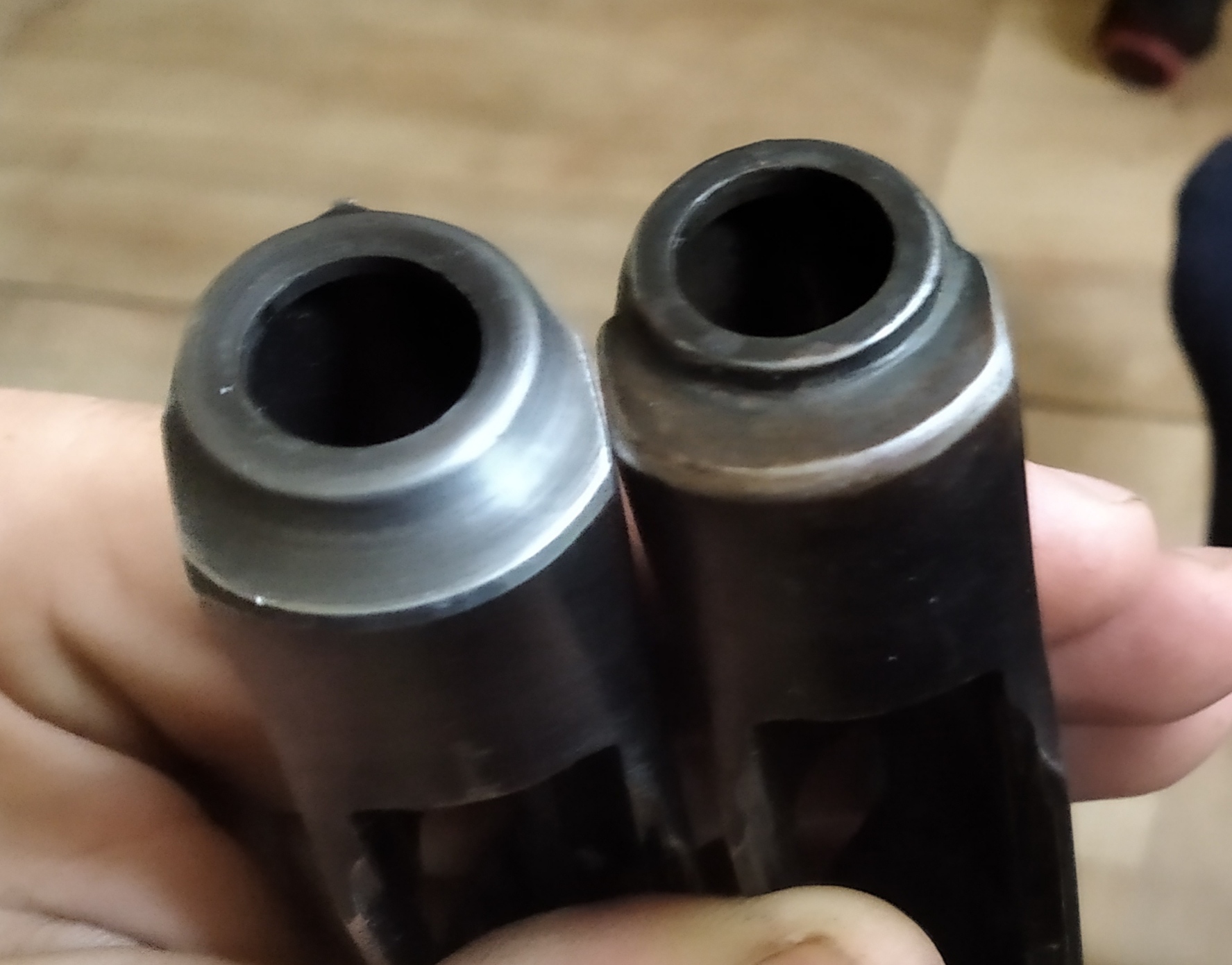 На верхнем фото видно, что мушка опилена, как на косомордом затворе, и на торце затвора следы ручной обработки.