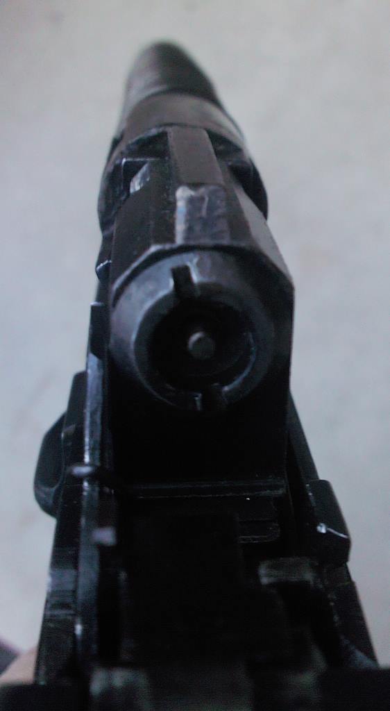Александр РБ писал(а): ..."Шат" рукоятки на МР-654-32 - устраняем за ... секунд... Проблема "шата", конечно в "нештатном" креплении рукоятки к раме. Наводельный винт, который имитирует фиксатор БП не дает рукоятке дойти до посадочного места впереди рамы. Штатный фиксатор этому не мешает, но если его поставить, то, естественно, не вставится пневмомагазин. Возвращаемся к "истокам", в 1949 год. этого фиксатора не было вообще! Берем штатный винт крепления рукояти, тем самым, параллельно решаем вопрос аутентичности, и ставим рукоять придерживая БП снизу, за выступ фиксации магазина. Входит на место легко. Ставим штатный винт на его место. Шата нет