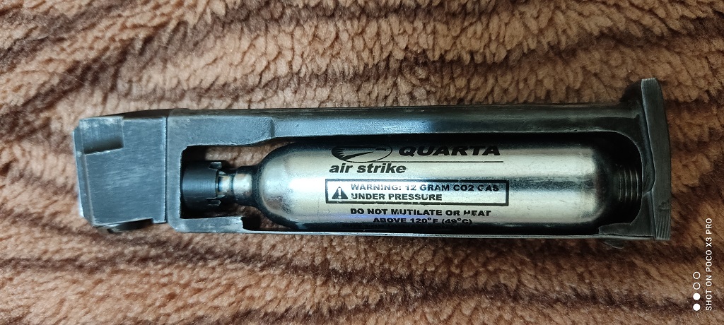 Александр РБ писал(а): ..."Шат" рукоятки на МР-654-32 - устраняем за ... секунд... Проблема "шата", конечно в "нештатном" креплении рукоятки к раме. Наводельный винт, который имитирует фиксатор БП не дает рукоятке дойти до посадочного места впереди рамы. Штатный фиксатор этому не мешает, но если его поставить, то, естественно, не вставится пневмомагазин. Возвращаемся к "истокам", в 1949 год. этого фиксатора не было вообще! Берем штатный винт крепления рукояти, тем самым, параллельно решаем вопрос аутентичности, и ставим рукоять придерживая БП снизу, за выступ фиксации магазина. Входит на место легко. Ставим штатный винт на его место. Шата нет