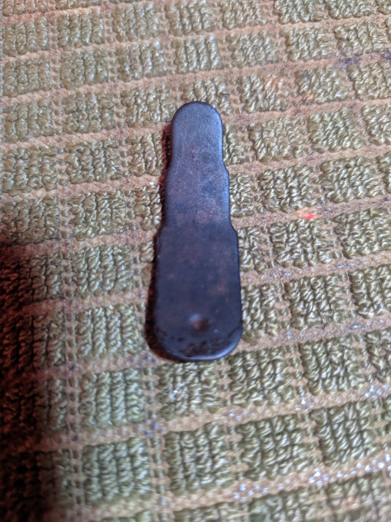 Стойка прицельной планки АКМ имеет ширину 22 мм. и отличается диаметр посадки на ствол,нужно будет расширить на миллиметр. Еще начал работать с передней крышкой цевья, приварил скобу крепления ремня и просверлил отверстие под замыкатель диаметром 4мм. ( Спасибо Андрей.) Ну и фото сделанного.