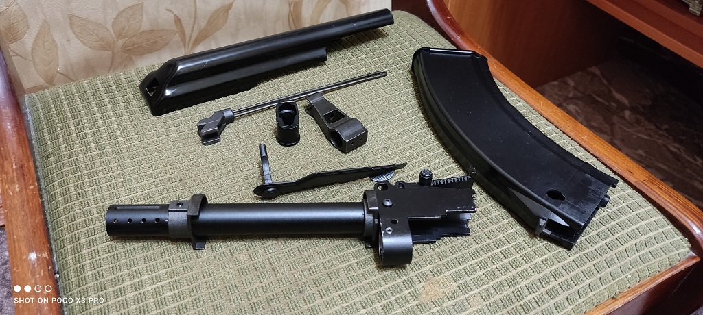 Рассточил отверстие в стойке прицельной планки и установил её. Китайская пружина не подошла,она шире и толще. Буду заказывать оригинальную и ещё кое что. Пока выглядит так.