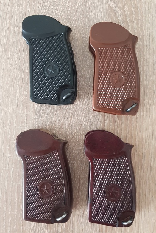 Рукоятки для мр 371 и для мр 654 32 серии. Две верхние(черная 15 р, коричневая 7 р, бакелит 25 р) и одна нижняя бакелит для мр 371. Бакелитовая для мр 654 32 серии - 25 р.