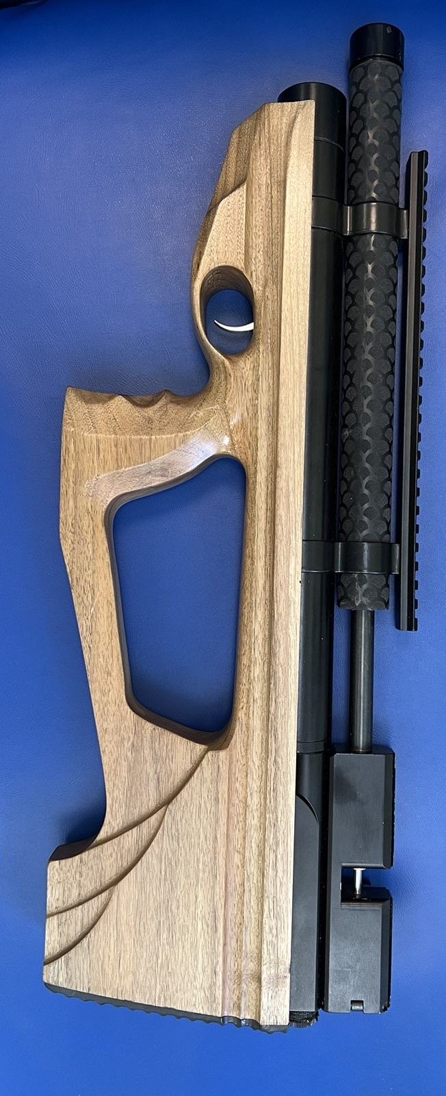 Малышка 50см на Барнаульском ките сделана Димонычем. Дерево - орех с лаком в три слоя, редуктор ханса 130атм, разборный досылатель, стволик 350мм, модер 5 Питерских стаканчиков( на данный момент стоит 3). Настроена хевиками на 230 км/ч. Может намного веселее, но куча расползается. В комплекте булка, чехол от ракеток, носик досылателя и втулка перепуска для 5.5, барабанчик, штуцер. В подарок отдам стволик 5.5 310мм от роднока проточенный под эту коробку.
