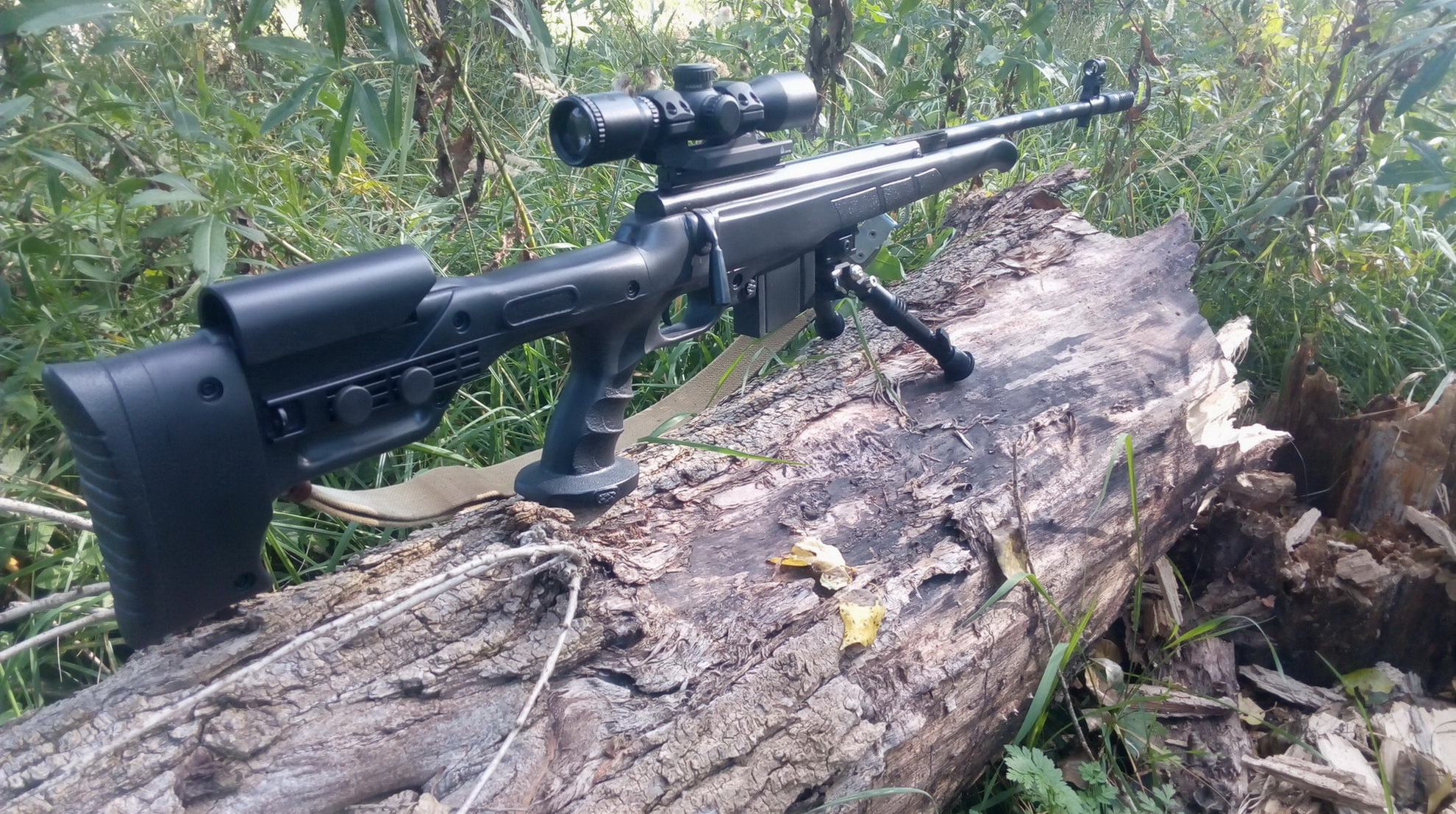 Теперь о доработке приклада винтовки. Может быть нужно было начать именно с неё, ну да ладно-главное что не забыл рассказать о этом. Итак, после покупки ложи я сразу обнаружил неприятный момент-длина приклада была очень маленькой. Да и руку втиснуть при охвате рукоятки пистолетной было крайне неудобно-неприятно тёрла по верху ладони нижняя плоскость шейки приклада. Это заметно думаю даже здесь: