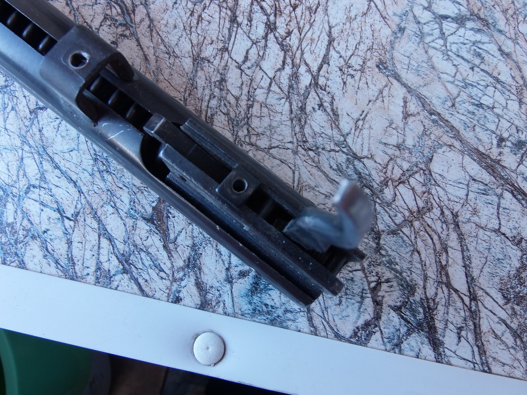 О крепеже сошек- отпилил планку «вивер» нужной длины. Расположить её конечно сами понимаете была возможность только перед патронным магазином. Далее был паз для перелома ствола. Именно так я крепил планку и на той «L96». Крепёж планки к ложе я объединил с передним крепежом компрессора винтовки-сделал в комплект дополнительный винт М5, но на 5мм длиннее предыдущего. Наложив планку на ложу после вставки «железа», этим самым винтом через планку «вивер» выполняется передний крепёж, задний винт крепежа тот же. Планочка не мешает переломать ствол абсолютно, не мешают и закреплённые быстросъёмные сошки «а-ля Атлас» на этой планке. В общем вот так крепится планка к ложе и так стоят сошки: