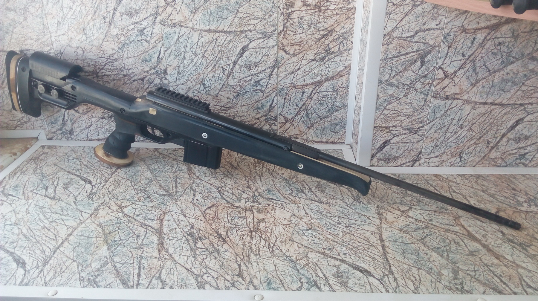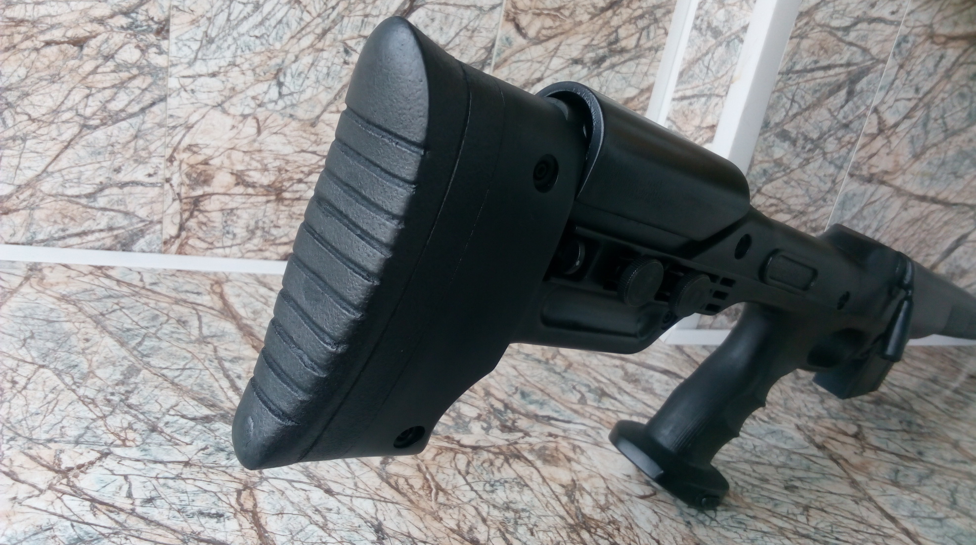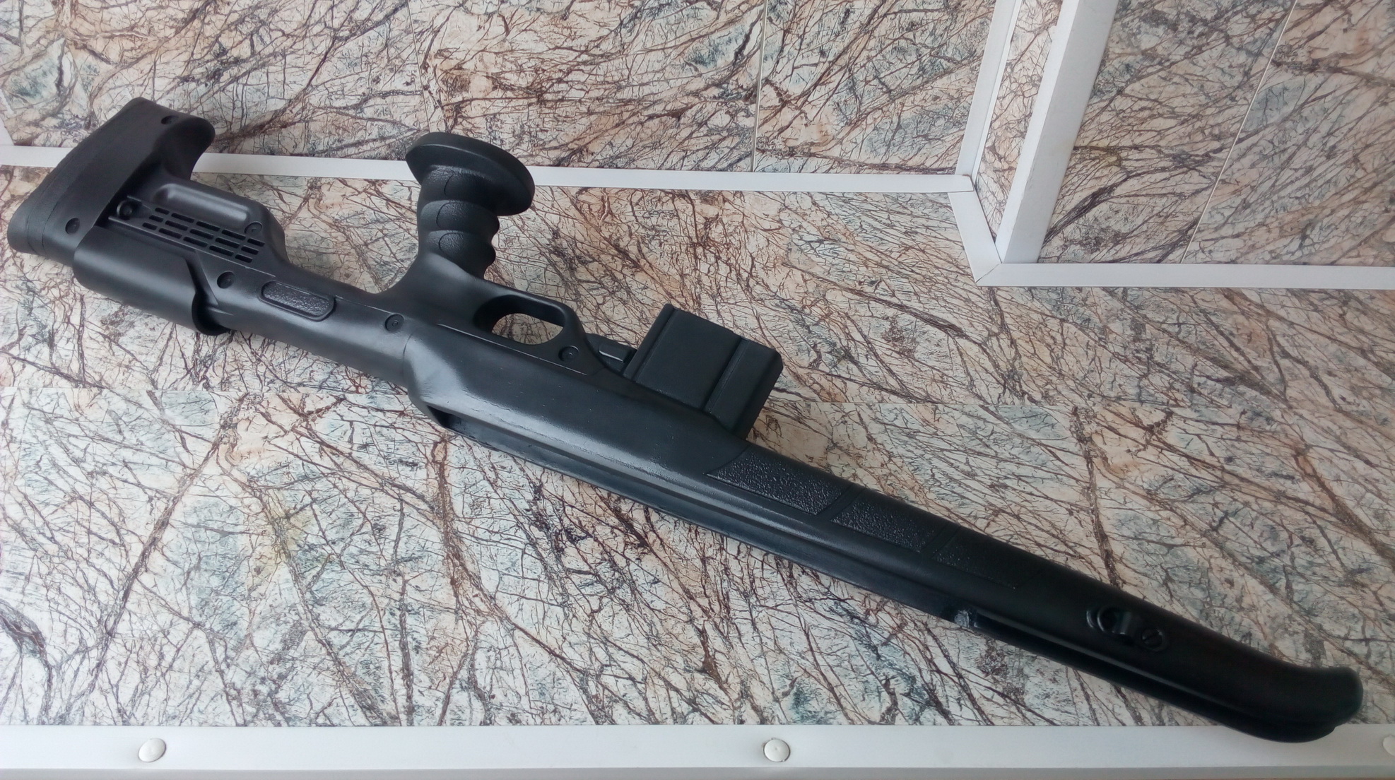 Теперь о доработке приклада винтовки. Может быть нужно было начать именно с неё, ну да ладно-главное что не забыл рассказать о этом. Итак, после покупки ложи я сразу обнаружил неприятный момент-длина приклада была очень маленькой. Да и руку втиснуть при охвате рукоятки пистолетной было крайне неудобно-неприятно тёрла по верху ладони нижняя плоскость шейки приклада. Это заметно думаю даже здесь: