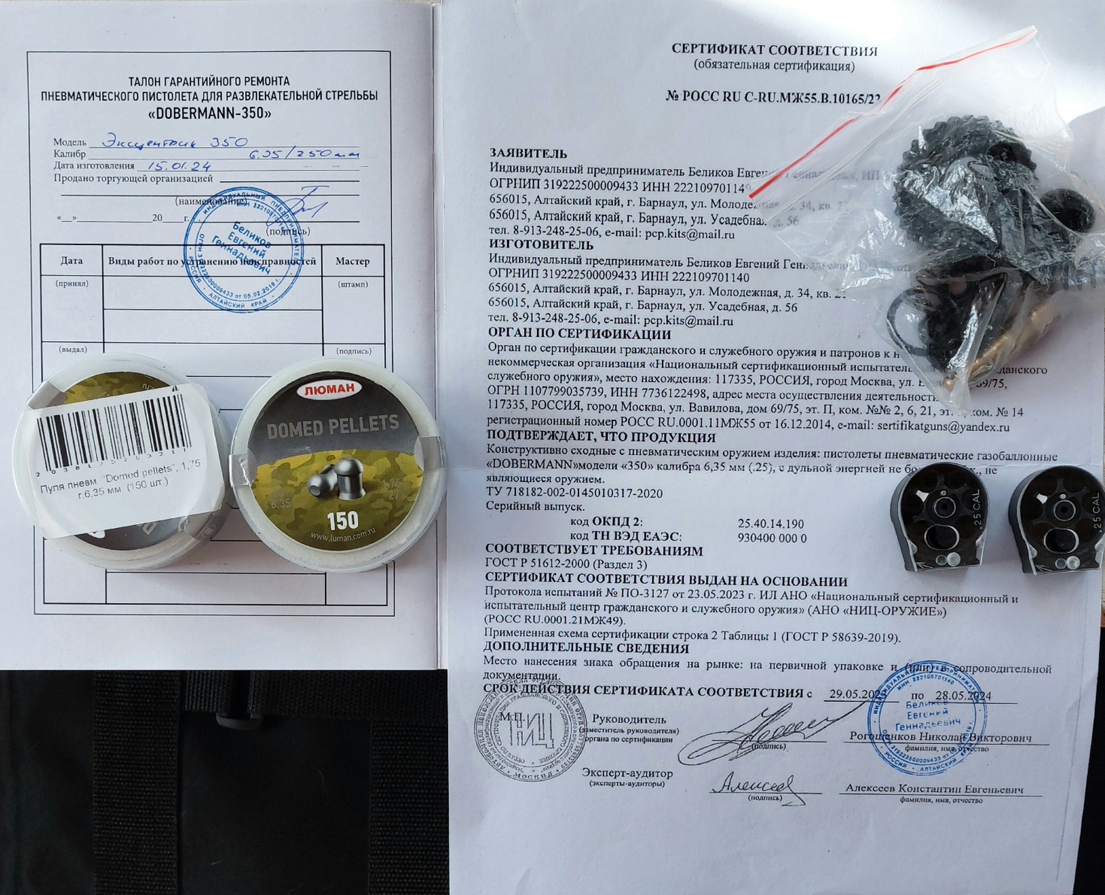 Комплект: само изделие с выше указаннымии допами, сумка-рюкзак, документы, пули, зип со всей заводской мелочёвкой и 2 автоматических барабанчика + один ручной.