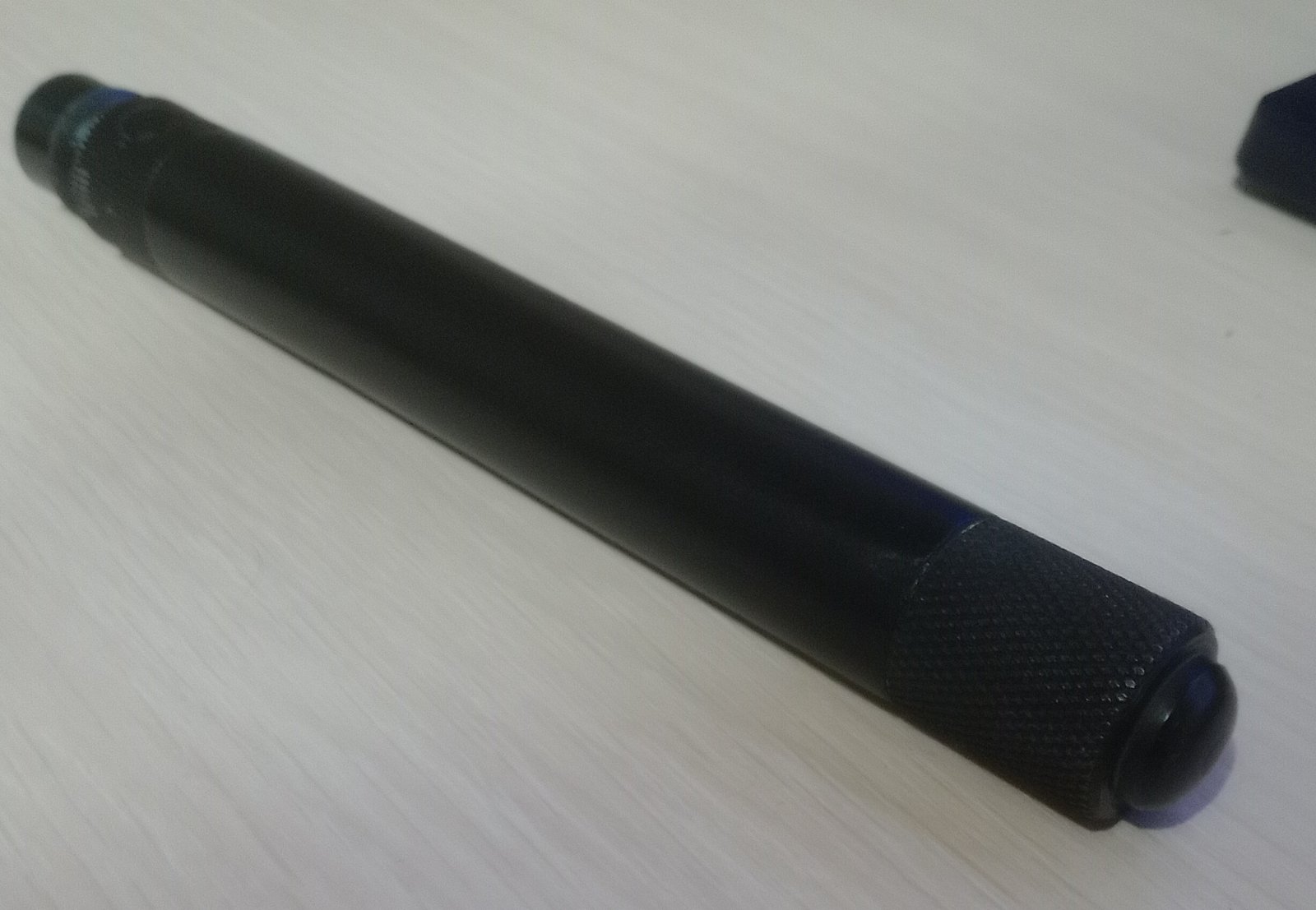Передок стоковой пробки запрессован на ЭДП в тонкостенную стальную трубку,для исключения проворота заштифтовано. Впереди в трубке нарезана резьба. Выточена стальная заглушка с ответной резьбой,на ней накатка для уверенного хвата при закручивании этой длинной пробки для прокола баллончика СО²,имеющей некоторую имитацию подствольного трубчатого магазина. Трубка заворонена на горячую,заглушка-хол.воронение. Потому оттенки воронения имеют отличие.Родную пробку чуть надо подкрасить на горячую чёрной матовой аэрозолью. Разумеется всё выполнено в одном диаметре,отталкиваясь от наруж.диаметра стоковой пробки. Закручиванию ничего не препятствует,по стволу не трёт и баллончик накалывает "как бабушка просила".