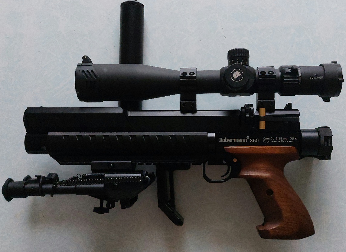 В продаже РСР пестокарабин Доберман эксцентрик 350, 6.35, стволик 250мм, прямоток.