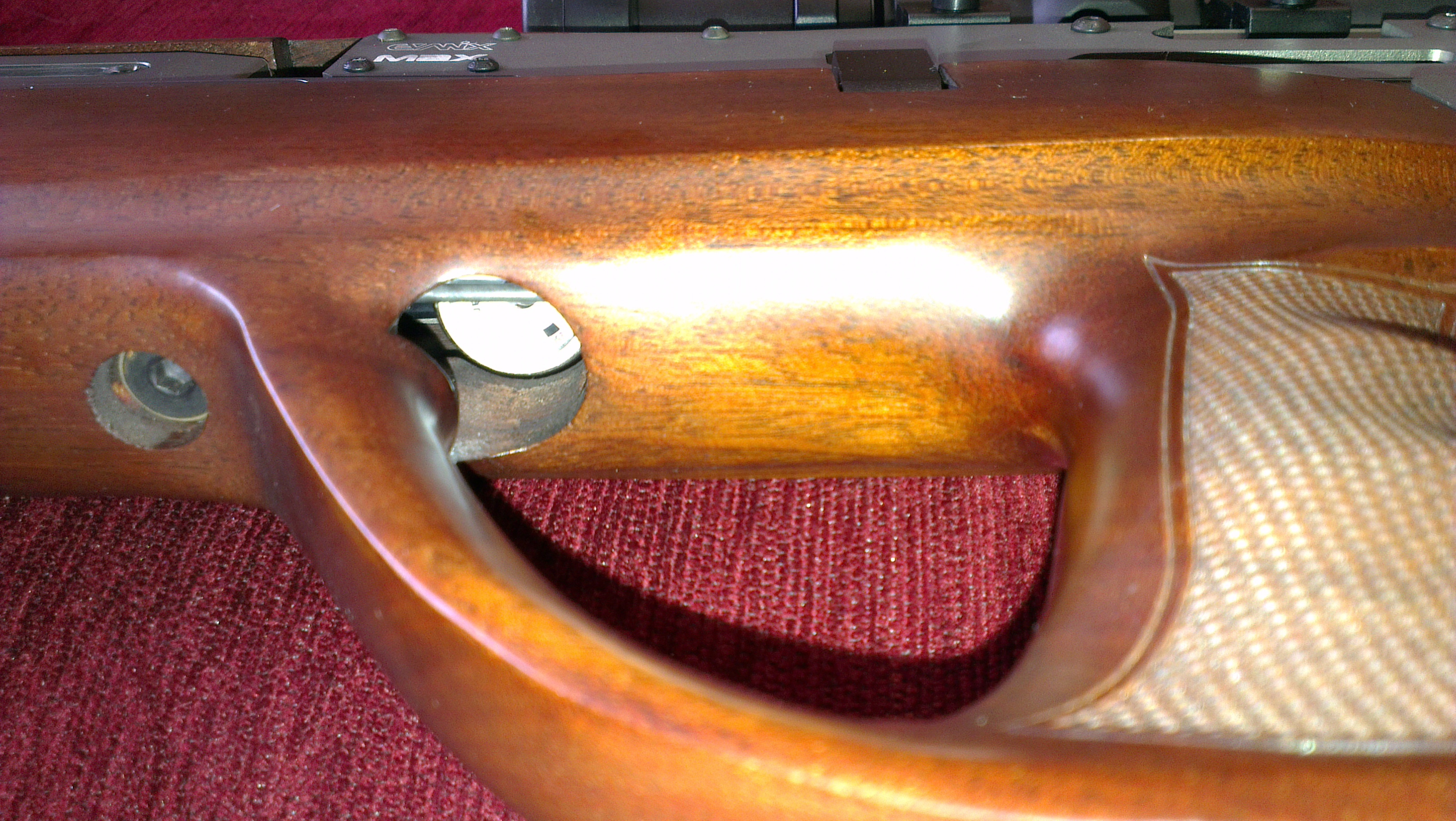 Заряжать вполне удобно, только понадобится какое-нибудь приспособление для проталкивания пулек в каморы, я шестигранником пользуюсь. Так же после полной зарядки магазинчика есть возможность снять его со взвода, раскрутив обратно проворачивающую пружину. Таким образом можно снаряженные держать про запас не опасаясь что она сядет а перед использованиям просто заново взвести. Деревянные вставки выполнены очень качественно, просто радуют глаз. Остальные части алюминиевые, всё крепится на потайных болтах под шестигранник, очень многих болтах :-): Всё железо и дерево очень плотно подогнано и вкупе с рублеными формами создаёт впечатление монолитной нерушимой конструкции. Однако когда я изучил возможность установки на МАКС-а антабок под ремень меня ждало разочарование - никак не выйдет... Да и переносить винт вверх ногами держась за деревянную часть как за ручку я бы тоже не советовал - очень уж тонкий слой дерева находится под шляпкой единственного крепящего его к корпусу винта. Насчёт отломается со временем или нет судить не берусь но сам не стал бы проверять :mi_ga_et: Спуск самый мягкий и четкий из всего что я когда-либо видел, это всё равно что на кнопку мышки нажать, там примерно такой же переключатель стоит :-): В плане безопасности по-моему это самая лучшая система, аж с двумя(!) предохранителями. Есть собственно флажок предохранителя, который физически не даёт произвести выстрел и кнопка выключения, разрывающая электрическую цепь.