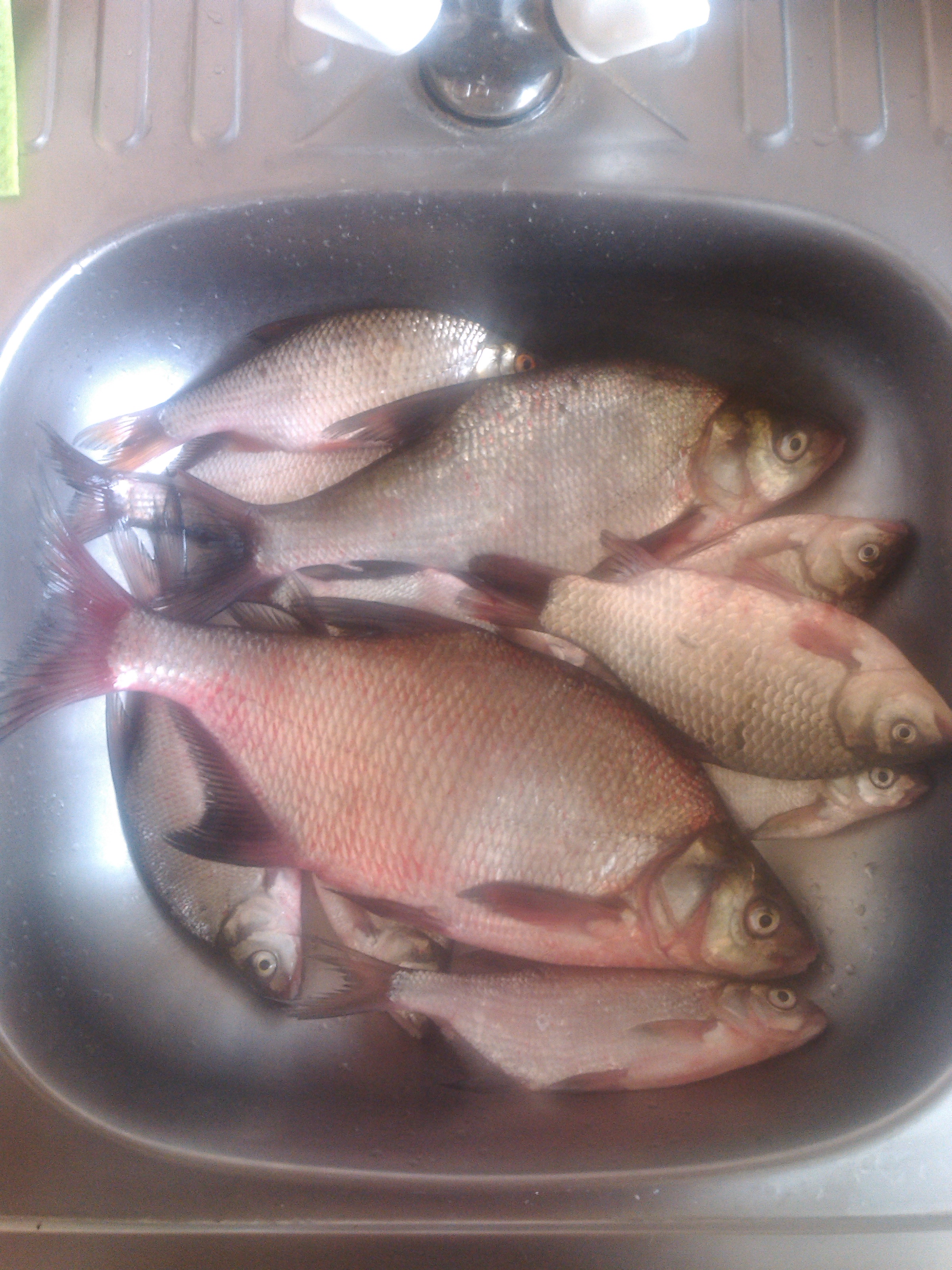 Карась и подлещик клевали на опарыш и червя, а леща взял на макароны.