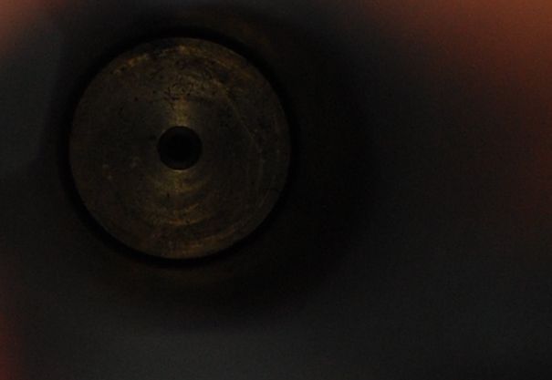 Ну и напоследок проверяем сам ствол, прогоняя пульку. НЕЛЬЗЯ проверять ствол, проталкивая пульку со стороны дульного среза!! Там ЧОК, который ее обжимает, и дальше она у вас провалится, и вы ошибочно будете полагать, что ствол просаженный! Именно так думает хозяин этого логана – он пропихнул 5,52 со стороны дульного среза и когда пулька «провалилась» дальше, он сильно расстроился. А зря! :D Просунув 5,50 с казны пулька идет плавно, равномерно туго по всей длинне ствола, упирается в ЧОК и очень туго выходит из него. Нарезается при этом идеально по всему диаметру головы и юбки, не деформируя поверхность. Все как в лучшем образце ствола LW – некчему придраться. Фото получилось каличное, ибо макро у меня нет, но понять можно.
