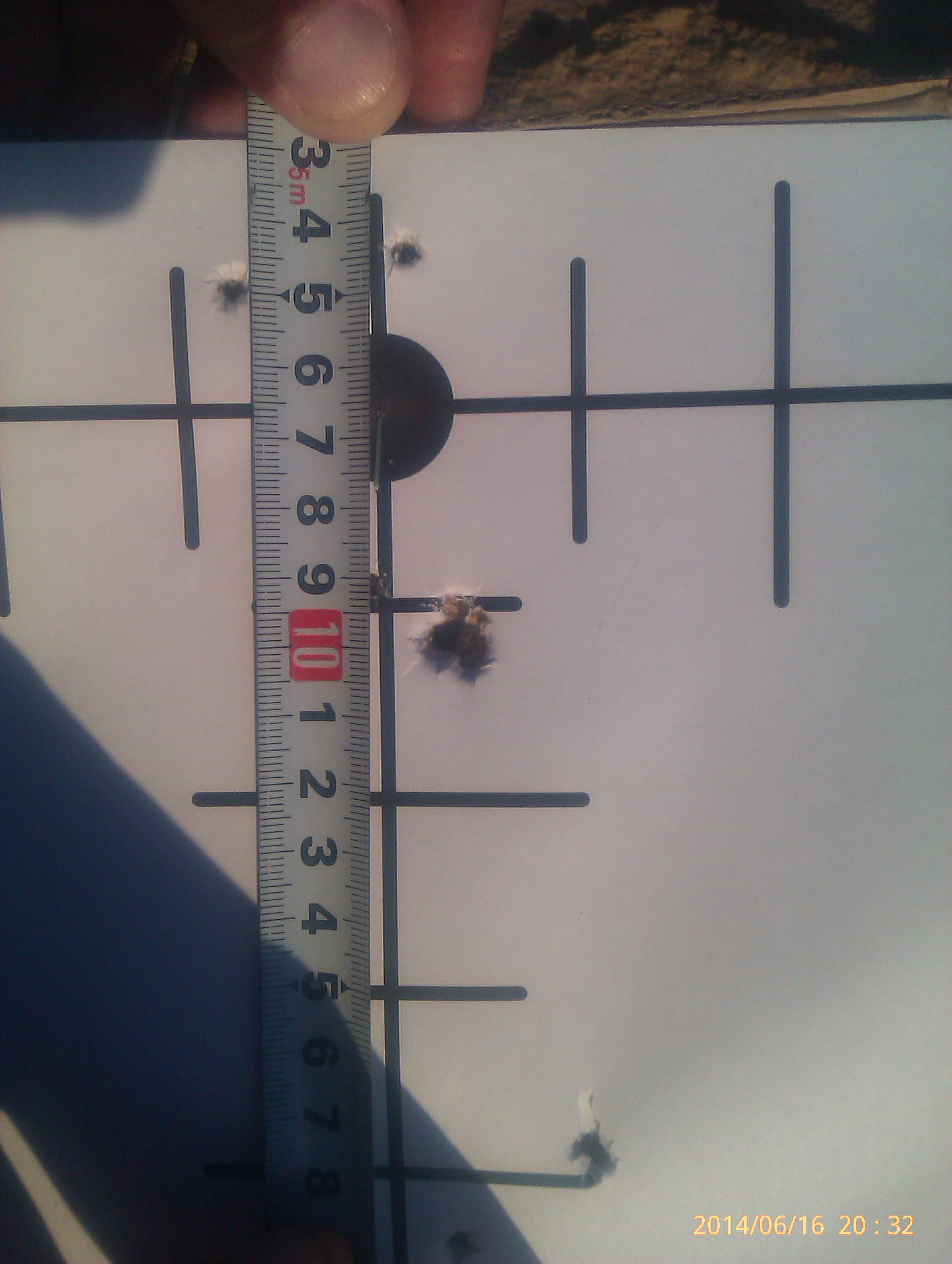 Давайте приходить к общим стандартам. Отстрел кучи меряется поткраям пробоин, меряем самые удаленные межу собой края т.е никаких прямоугольноориентированных куч. Указываем тип,вес,марку,калибр припаса,атм. условия если улица или только температуру если тир. Скорость боеприпаса. Очень приветствуется 2*5/2 мишеньки в мм. Кто-нибудь против? Я просто внес предложение.