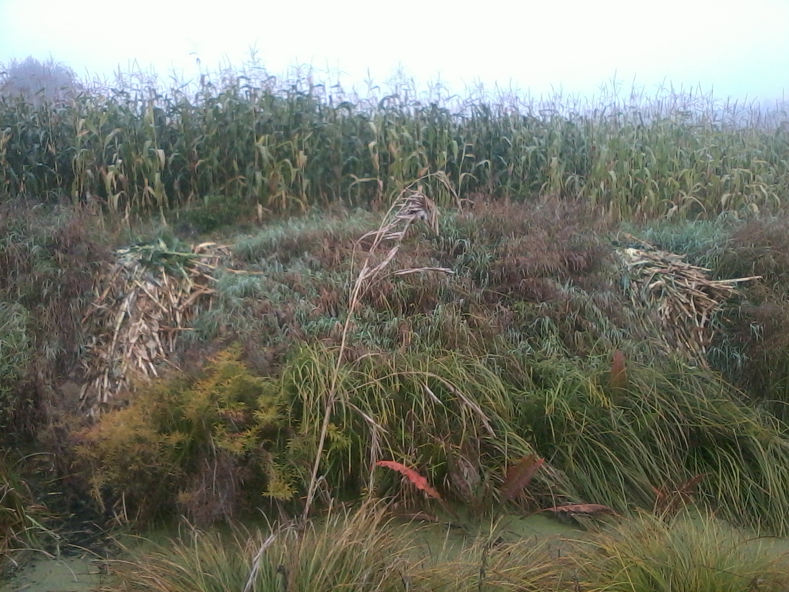 З правага боку дарогі размешчаны адстойнікі з комплекса (калі ў дзяцінстве мы хадзілі ў лес, то з іх, час ад часу ўзнімаліся качкі). На дадзены момант, яны амаль усе пазарасталі, ды і знаходзяцца ў зоне "А". Скончылася поле з кукурузай, за ім адразу канаўка, я вырашыў яе праверыць. Пуста. Толькі напалохаў бабра.