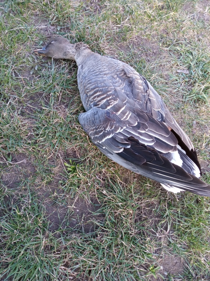 Был я неожиданно удивлён толщиной шкурного покрова гуся. Ну дублёнка - не иначе. Словно бронежилет и вправду. За то время, пока ободрал, наверное, двух зайцев ошкурил бы. Необыкновенно жирный объект.