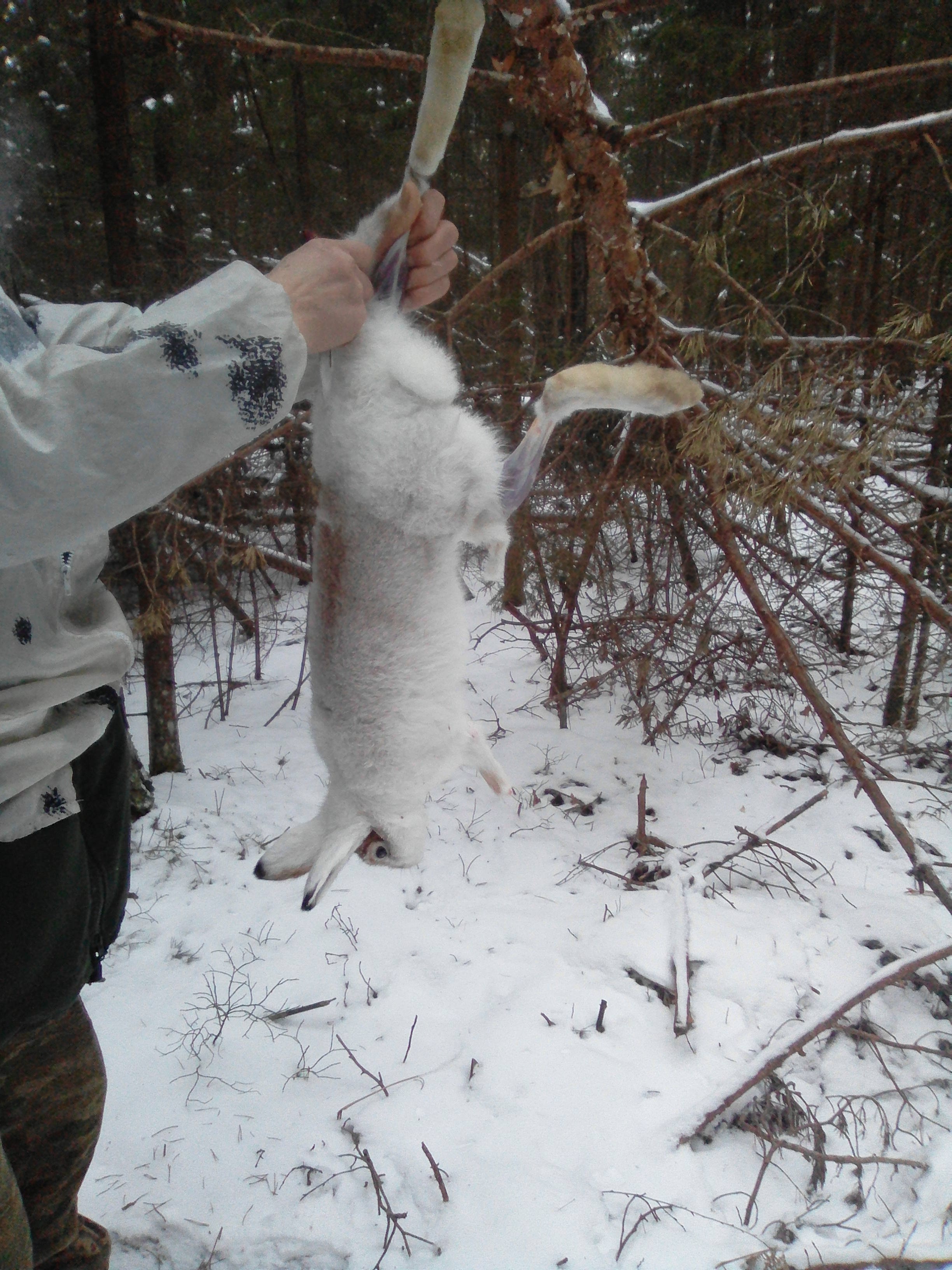 Беляка не трогаю, две недели назад собаки втроём беляка гоняли около 5 часов, на глаза видели где лёг, где собак обманул, дважды в 15-20 метрах от меня и друга моего пробегал, но рука не поднялась, ибо беляка мало у нас и в коллективе давно решили не бить его
