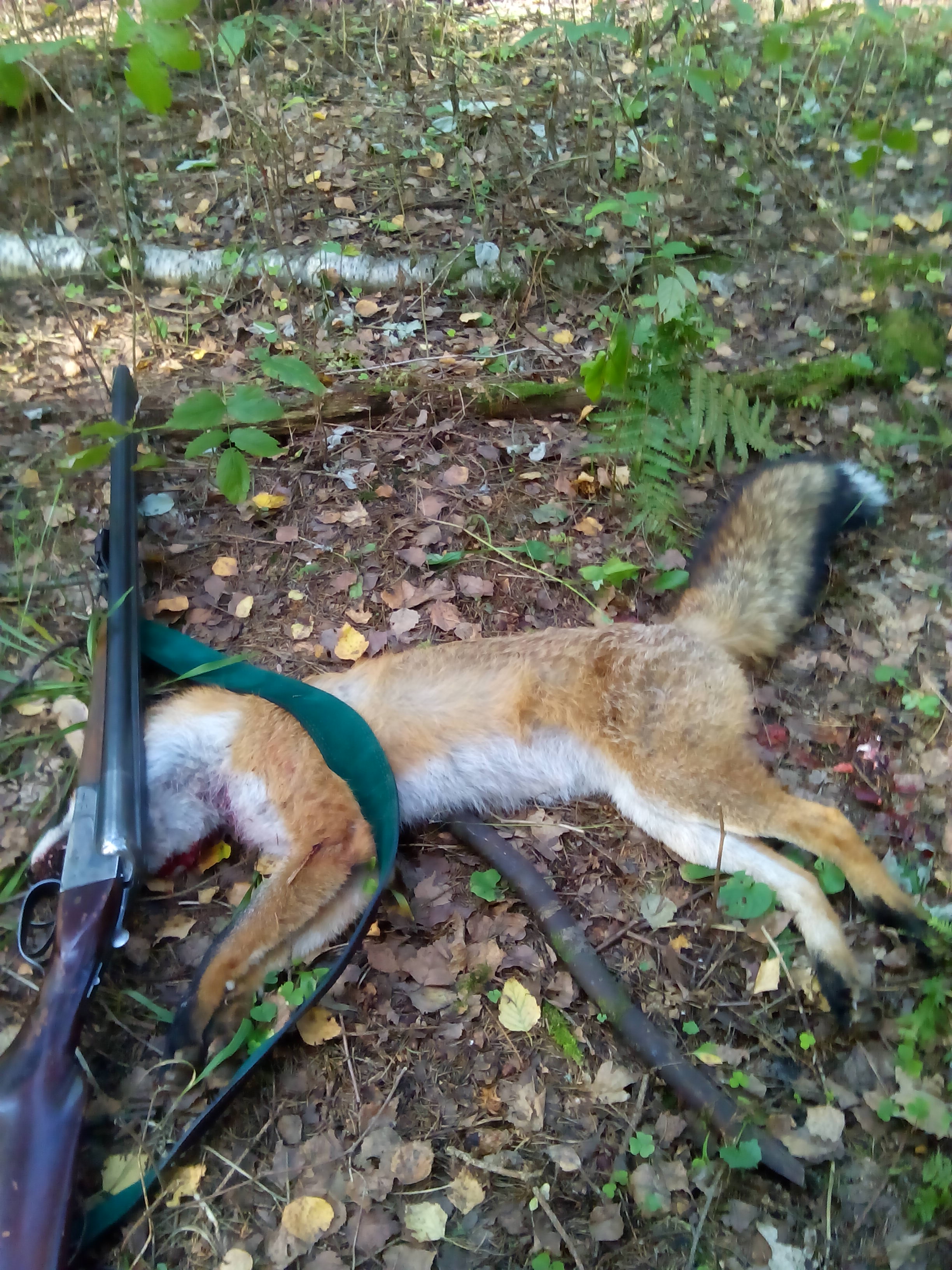 mitya.suhoy писал(а):вчера тоже открылись по зайчику, погода как на заказ, в лесу всё позарастало до неузнаваемости, ни дялки, а непроходимые джунгли. Гонец поднял лису, метров с 30 точно попал в голову, поэтому по эстетическим соображениям морду рыжей не фотографировал. Шкуру снял - чёрного много, поэтому пришлось выкинуть, только хвост на память оставил, а собранные попутно грибы забыл у друга, потому как беседа очень задушевная вышлаПоднимали секача, двух коз, а зайца даже не увидели. Потом байки Митяя у костра, в общем открытие состоялось, чего и всем вам желаю