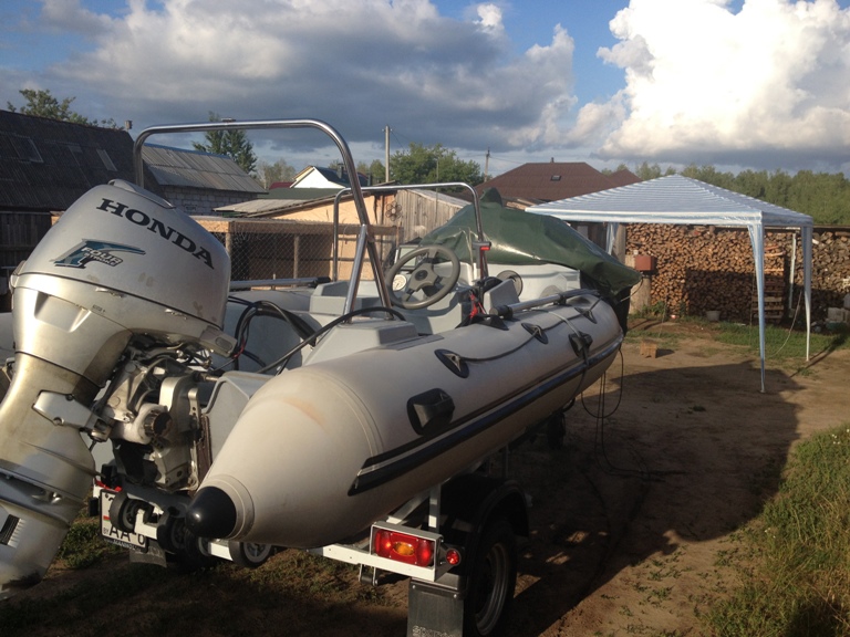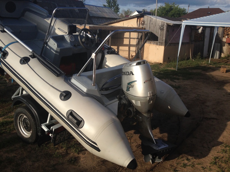 Катер Велес R440 мотор 4-х тактный Хонда 40 л.с. + прицеп под катер. есть все дуги, рундуки, стойка, прикуриватель-розетка, кожанный руль, стекло..... Электро подъемные механизмы мотора и тд. Катер 2011 мотор 2007-2008год