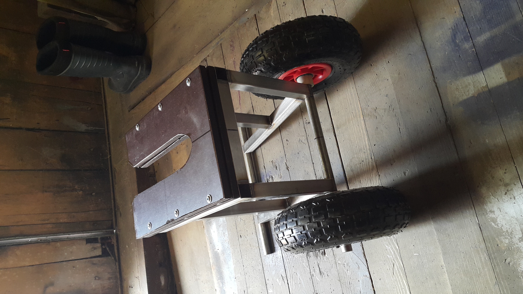 Тележка для лодочного мотора, из нержавейки. Ширина пропила 60мм. Для мотора мощностью от 5 до 30 л.с. Сварена из нержавейки 25*25*1,5, трубка - ось нержа 20мм