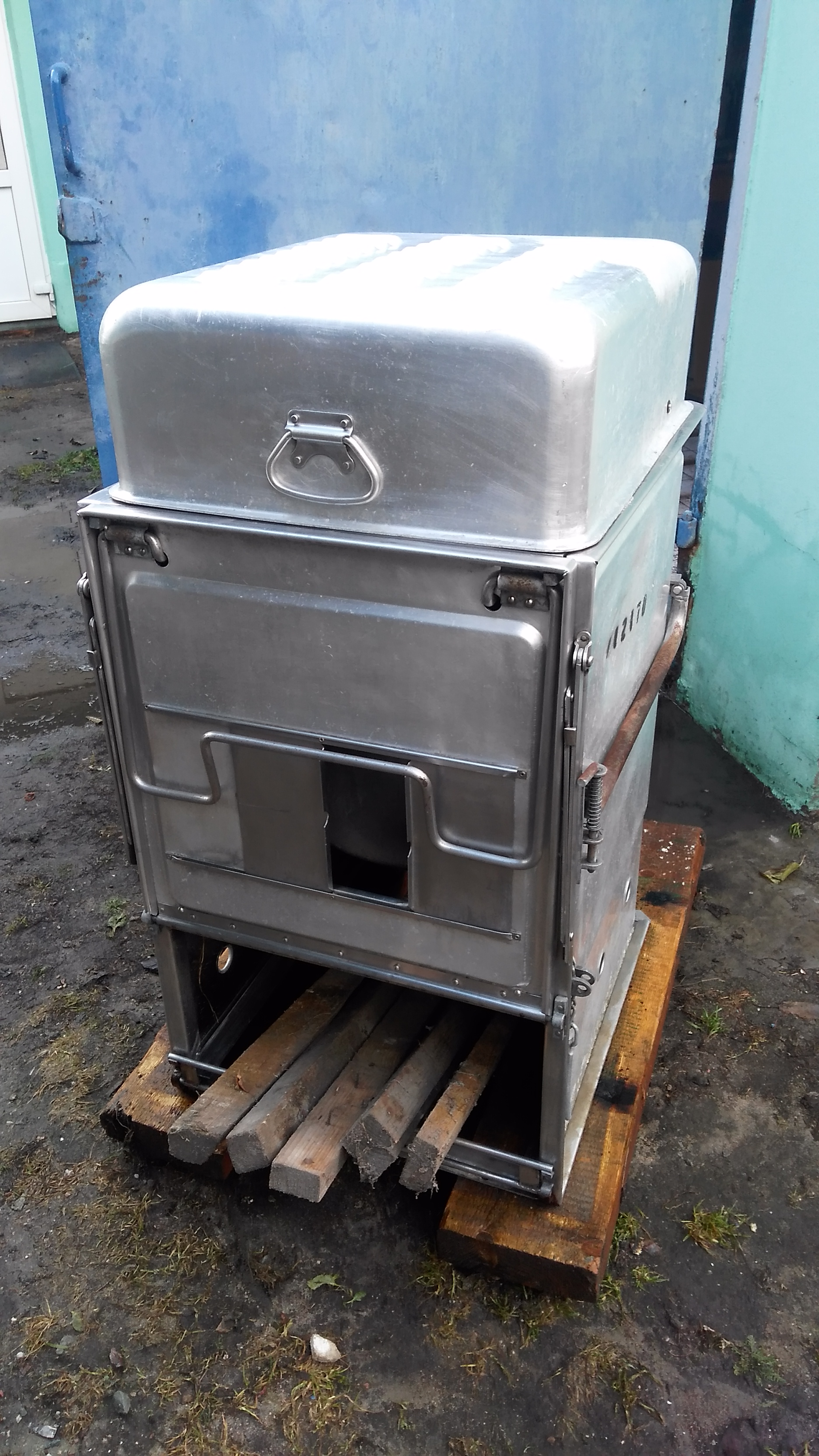 Компактная, универсальная полевая кухня американского производства для больших компаний на охоте или рыбалке. Размеры ВxШхГ = 106 (85 без крышки)х56х66. Материал печки - нержавейка 3 мм., материал посуды - алюминий 5 мм. Вес в сборе - около 50 кг. Топится дровами или брикетом. В отличном состоянии. 480 руб. +375297232708 Дмитрий