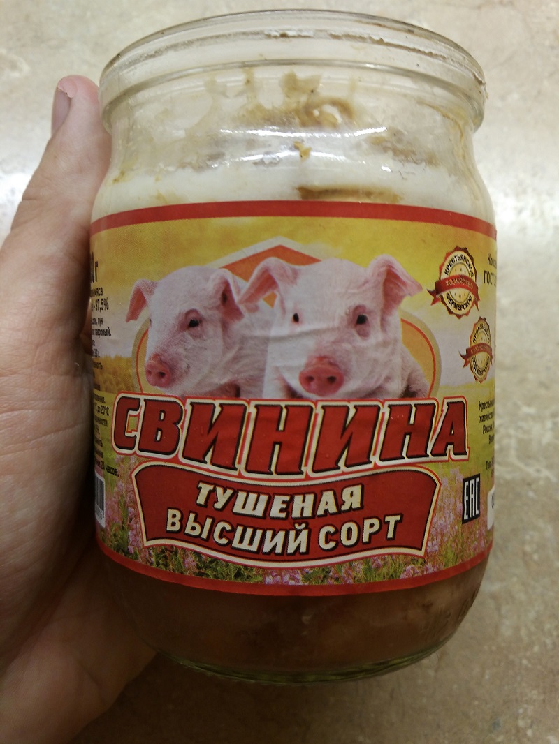 Недавно на ждановичах на тест купил свиную тушенку какого то филиала Слуцкого хлебозавода. Там все ждановичи ей завалены. В стеклянной банке 500 гр. Очень уже цена подозрительно низкой показалась. Так вот, мясо черное и горькое, как будто из хряков делалось, жира, бульона и бог весть чего еще, что нормальный человек не стал бы есть, больше чем пол банки. И тем не менее - на банке ГОСТ и хваленое "белорусское производство"! В итоге полетела эта банка в мусорку вместе с содержимым...