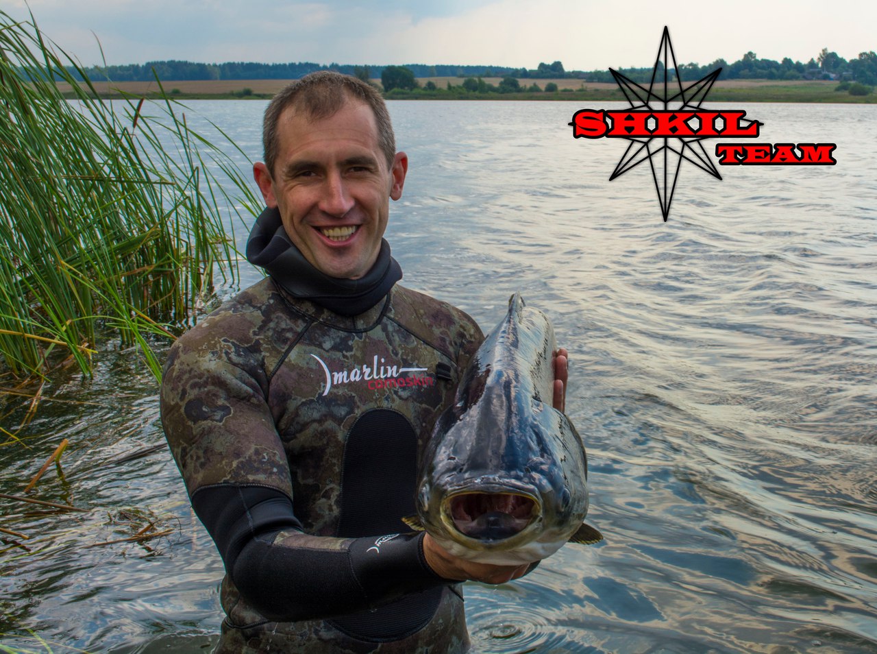Трофейная охота в мутной воде. Как известно, в мутной воде рыбы больше, чем в прозрачной. Но не везде... Конкретно на эту охоту мы собирались и ехали точно зная, что в водоёме должна быть трофейная рыба. Взять её днём, да ещё и в мутной воде, задача не из простых, но тем и лучше! Вызов себе как спортсмену-охотнику! Приехав на водоём, оцениваем прозрачность воды: 1-2 метра. Самым подходящим оружием для данного прозрака будет пневмат, заднерукий, 50-60см. Закачка должна быть 23-27кг - для того, чтобы прошить навылет плотную крупную рыбу с твёрдой чешуёй. Костюмы 5мм Марлин и Омер. Маски с хорошим обзором, так как охота будет вестись на просвет.
