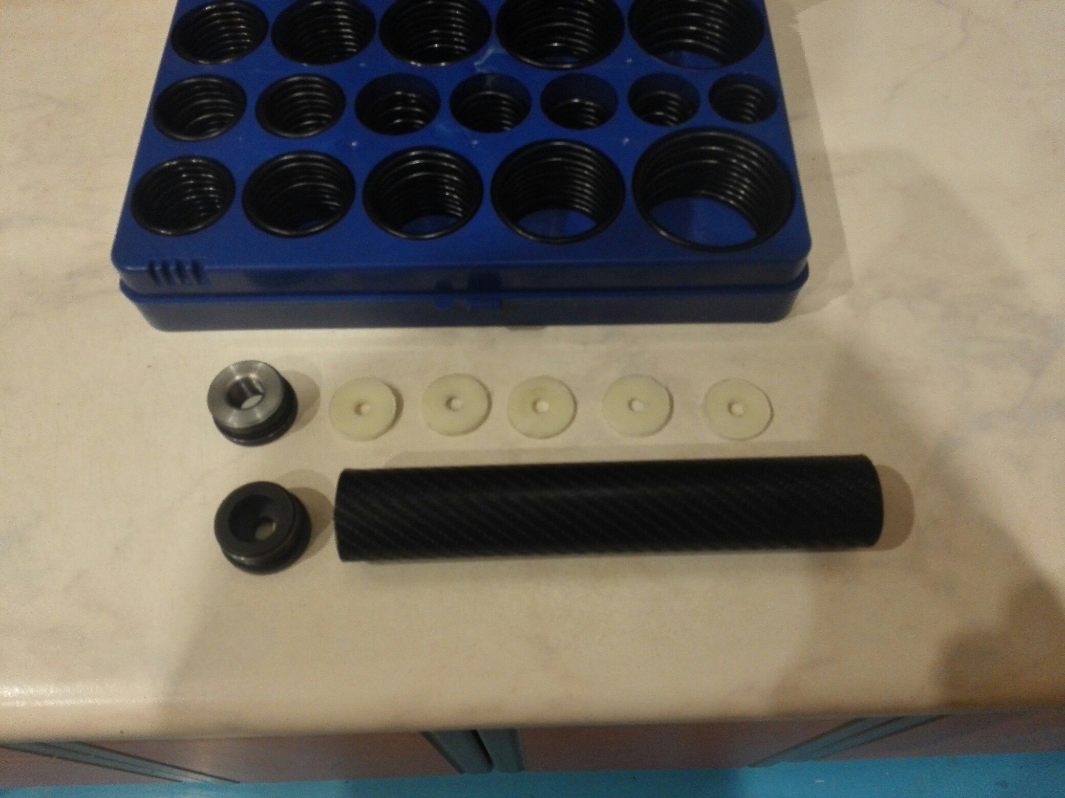 Недоделанный модер, сталь, труба 30, пробки на резьбе, 5 шайб из фторопласта.