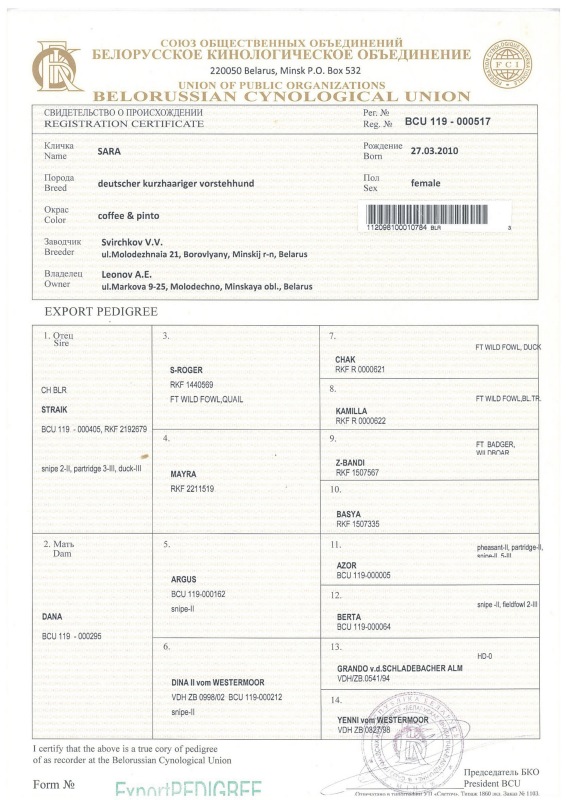 22-ая Минская облостная выставка охотничьих собак- отлично, 1-ое место.