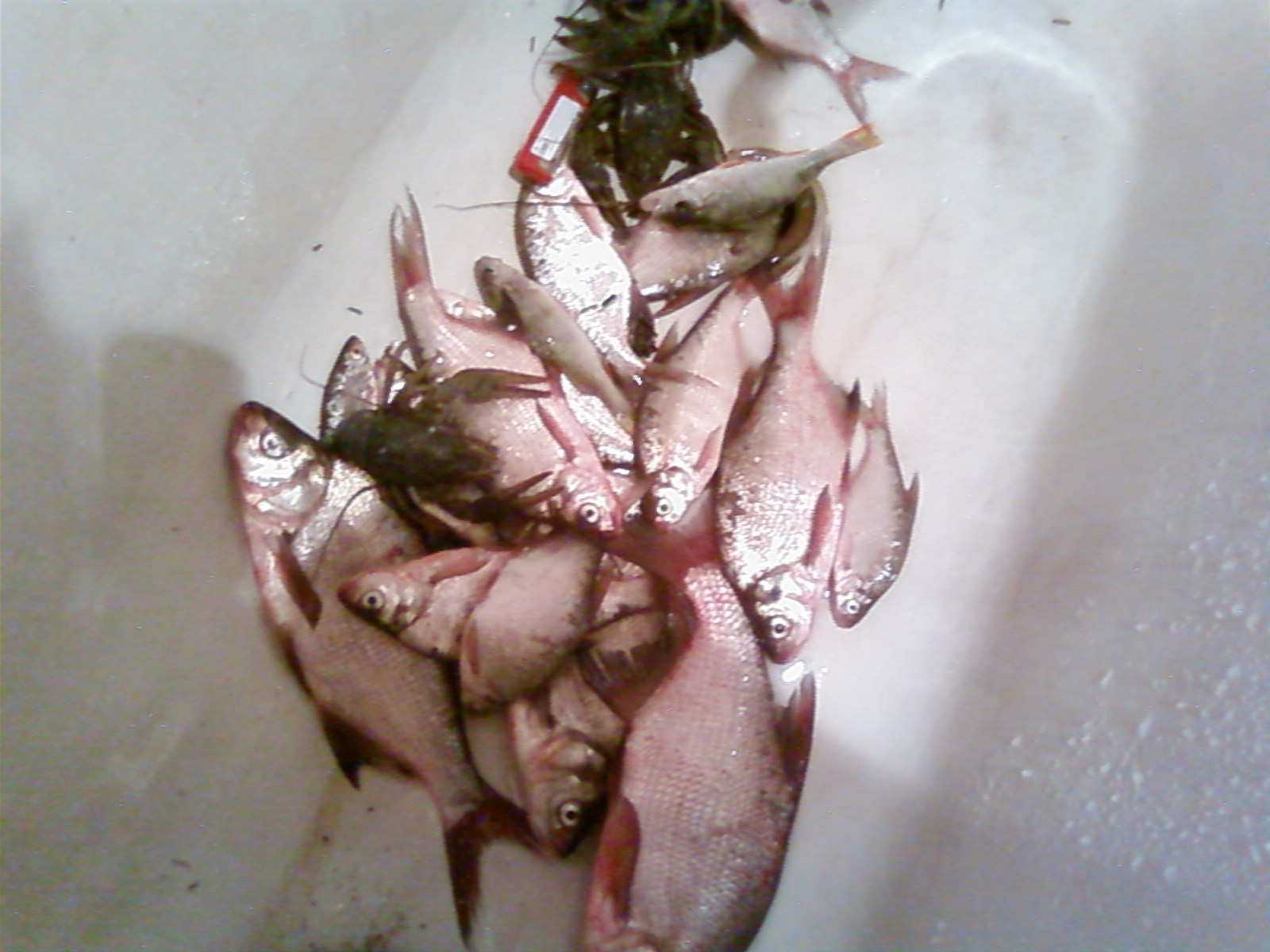 По-началу были пару конкретных поклёвок на кормушки, увы, по нулям, затем редкие поклёвки на удочку и парочка-другая особей на берегу, начался сильный ветер, из человек 12-15 на берегу остались трое ну и мы, не пожалели, начался активный клёв уклеёки, после того, как закончилась прикормка, пользовались песочком))))))))))