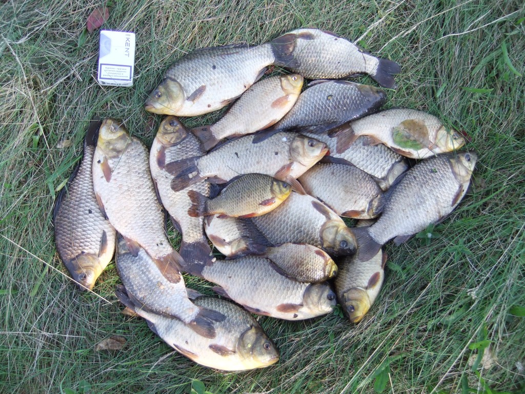 Одна удочка, 2-а часа, 19 красавцев карасей 7,6 кг весом... минус два пододка 0,14, 5-ть сходов и всего 6-ть отпущенных недомерков...