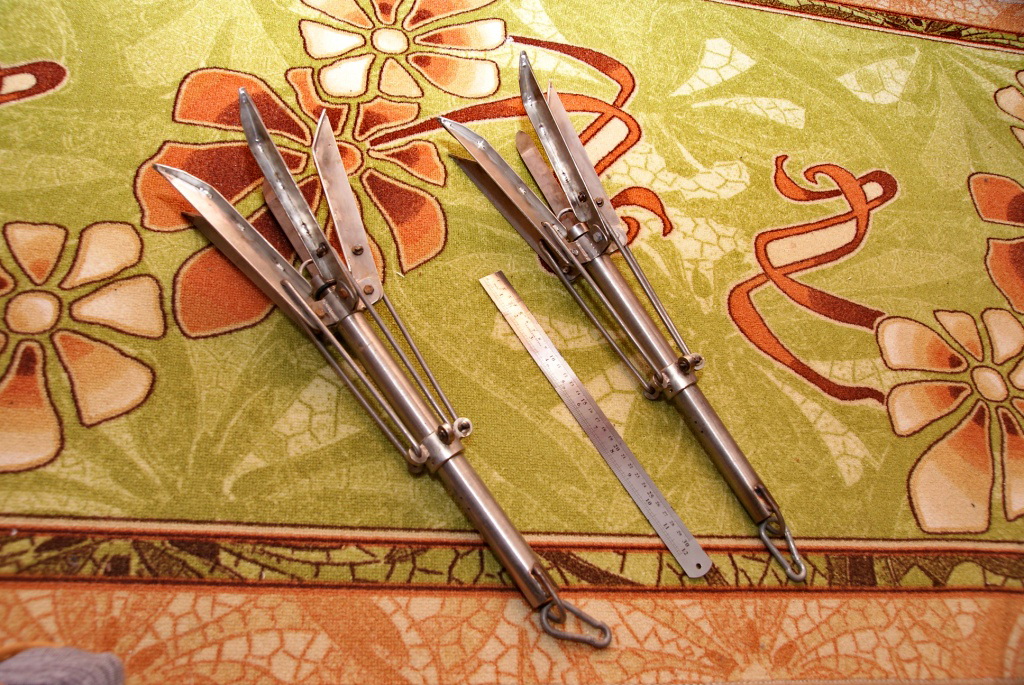 После некоторого времени эксплуатации надувной лодки с разными случайными (обычно одноразовыми , не очень удобными и небезопасными для материала лодки) грузами (кирпичи, попавшиеся под руку железяки и т.д.) решил обзавестись "правильными" "якорями" которые были бы компактными при перевозке (и за спиной в рюкзаке) , в тоже время прилипали бы ко дну, более-менее держали лодку и легко выпутывались бы из водорослей. Добыл свинец из старых аккум. и отлил. Форма блина с разной толщиной позволила добится того, что груз падает нужной стороной вниз, прилипает и тащится при нагрузке по дну, без приподымания передней части, и значит слегка зарывается в него (как скребок). При этом он легко выходит из ила и поднимается на поверхность, а для очистки от налипших водорослей и т.д. достаточно его несколько раз при подъеме провести под лодкой из стороны в сторону. Для отливки груза в 3.5кг. понадобилтся прим. два аккум. 90ам.ч и 70 ам.ч. Я вставлял при отливке резьбовые втулки из нерж. в которые потом вкручиваются рымболты, но варианты крепления неограничены. Хотя с моей точки зрения втулки поставить проще, сверлим в посуде для отливки отв. и прикручиваем с обратной стороны болтом втулку с приваренным поперек кусочком подходящего прутка.